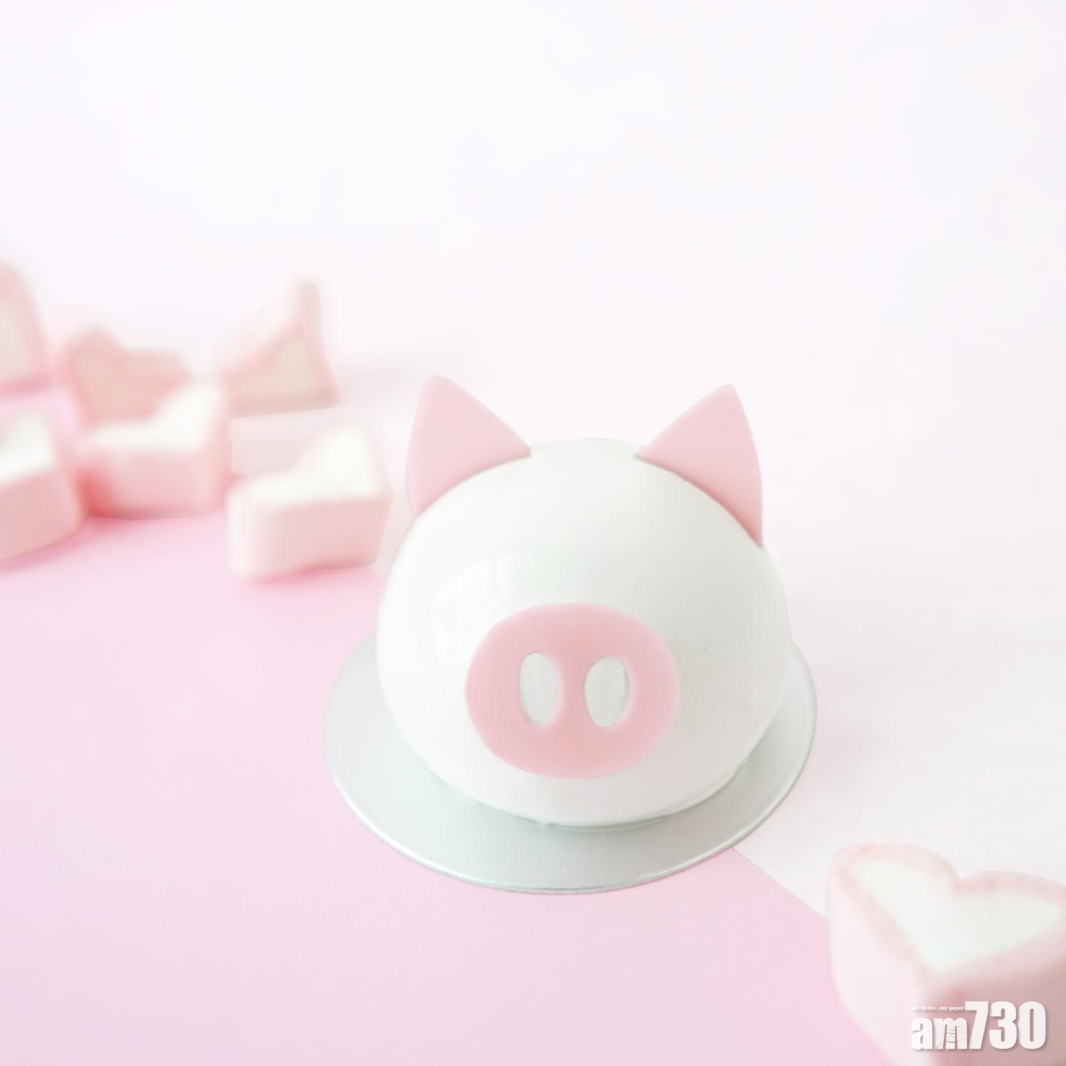 「Mr Piggy」,以淺粉色圓形蛋糕作基調,綴以柔和粉紅系的豬耳朵及豬鼻,勾勒出小豬的趣致外貌;內藏朱古力海綿蛋糕,加上伯爵茶慕絲及血橙果醬。$50