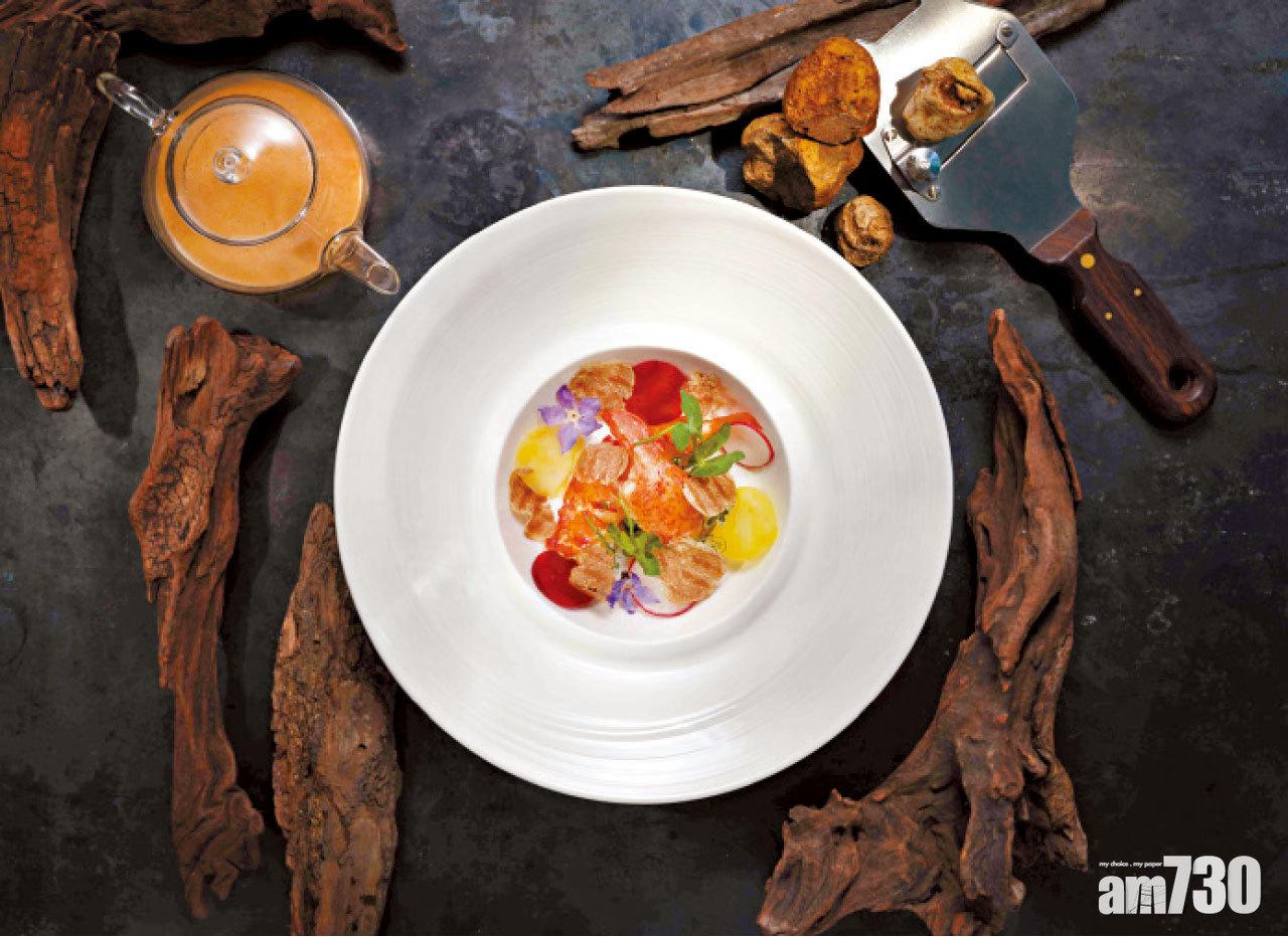 意寧谷(Nicholini’s)的意籍主廚Riccardo Catarsi,特別選用來自意大利Alba小鎮的野生白松露,設計出頂級香松白鑽晚宴。主廚家鄉特色海鮮濃湯Cacciucco,在龍蝦肉上刨入新鮮的白松露片,利用熱力將松露清香揮發,而湯頭亦用多種海鮮熬煮,鮮味十足。另一道鮟鱇魚火腿卷,是用特級Culatello火腿片包裹嫩滑的鮟鱇魚,再用慢火煎至金黃色,加上白松露更味道更帶層次。