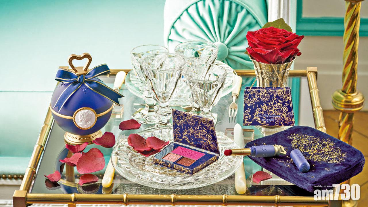 Les Merveilleuses LADURÉE以「夜之盛宴」為主題,推出夜之盛宴彩妝組合($530),包括繡上金色玫瑰花紋的絲絨化妝袋及華麗亮彩唇膏,雙色眼影及胭脂更盛載於手提包設計的盒中,十分精緻。另外,品牌著名的花瓣胭脂亦改用醉人的深紅色,胭脂盒更換成限定的夢幻深藍,盒外更繫上同色系絲帶襯托,令胭脂盒格外精巧高貴。