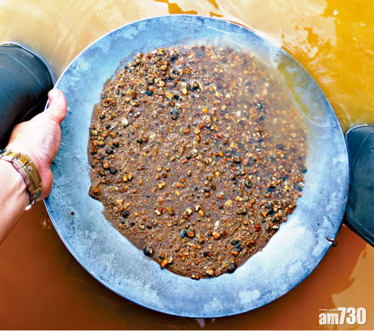 看過靜態展品,到了輕鬆環節,人人或有機會奪金而回,這就要視乎淘金的成績了。走入淘金場內,穿好防水鞋,開始碰運氣,場主已經準備好一切,提供一個平底鍋,上面載有挖自河床的沙石,第一個動作,是將平底鍋重複在水面上下用力搖動,先沖走粗沙粒,繼而放輕力度,連續做同一動作,直至幼小沙粒也慢慢去掉,經過多次嘗試,鍋上的幼沙已經所餘無幾了,這時,便需要細心觀察平底鍋上是否有閃亮的小東西,因為金沙較重,會留下來,如有懷疑,場主樂於即場幫大家判斷是否中獎,然後小心翼翼地用玻璃管裝好戰利品,方便帶回家。