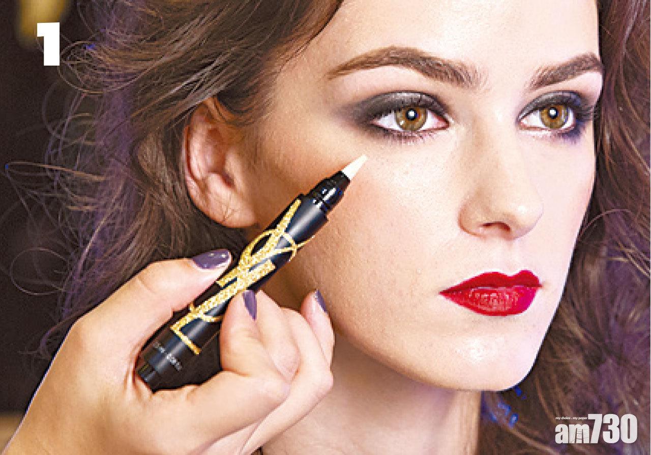 1.轉季天氣肌膚容易敏感,先以絲緞極致補濕底霜為肌膚打好底,之後在眼頭及眼底抹上明彩筆,提亮雙眸,另外亦可沿顴骨和眉骨頂端輕抹,打造立體光影。