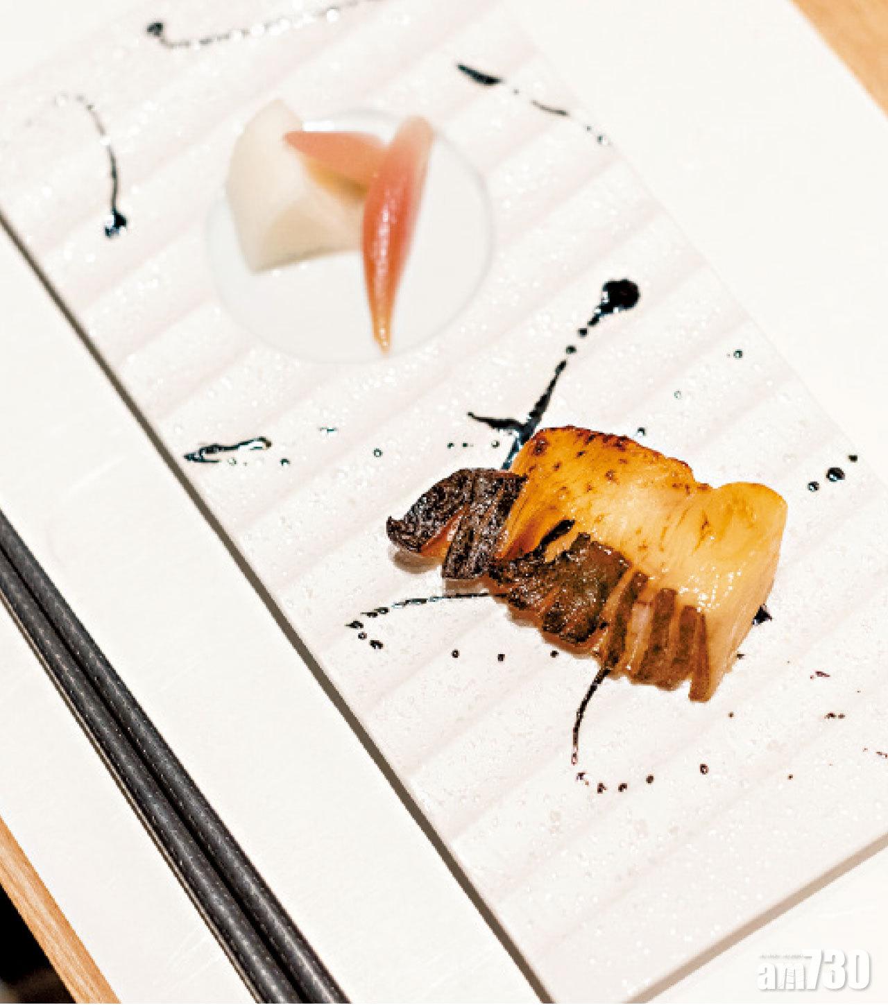 每道菜式都反映出廚師的細心,前菜為冷盤,口感爽彈的蓴菜配上蒸煮過的蝦夷鮑魚和花竹蝦,蓴菜獨特的膠質如果凍般透心涼,一解煩悶。燒物便以油分較少的鯧魚代替平日常吃的鱈魚,其肉質細緻,以西京麵豉漬燒特別香口。主菜的牛轉為凍食,將宮崎牛以慢火烤後再冷藏,上枱前切出薄片,同樣吃出入口即溶的口感,卻沒有那油膩飽滯感,恰到好處。