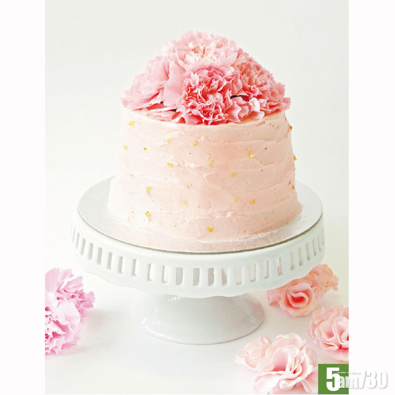 5.母親節限定無麩質荔枝玫瑰紅桑子雪芳蛋糕,糕面飾有新鮮康乃馨及金箔,感覺溫暖又高貴。$630/6吋