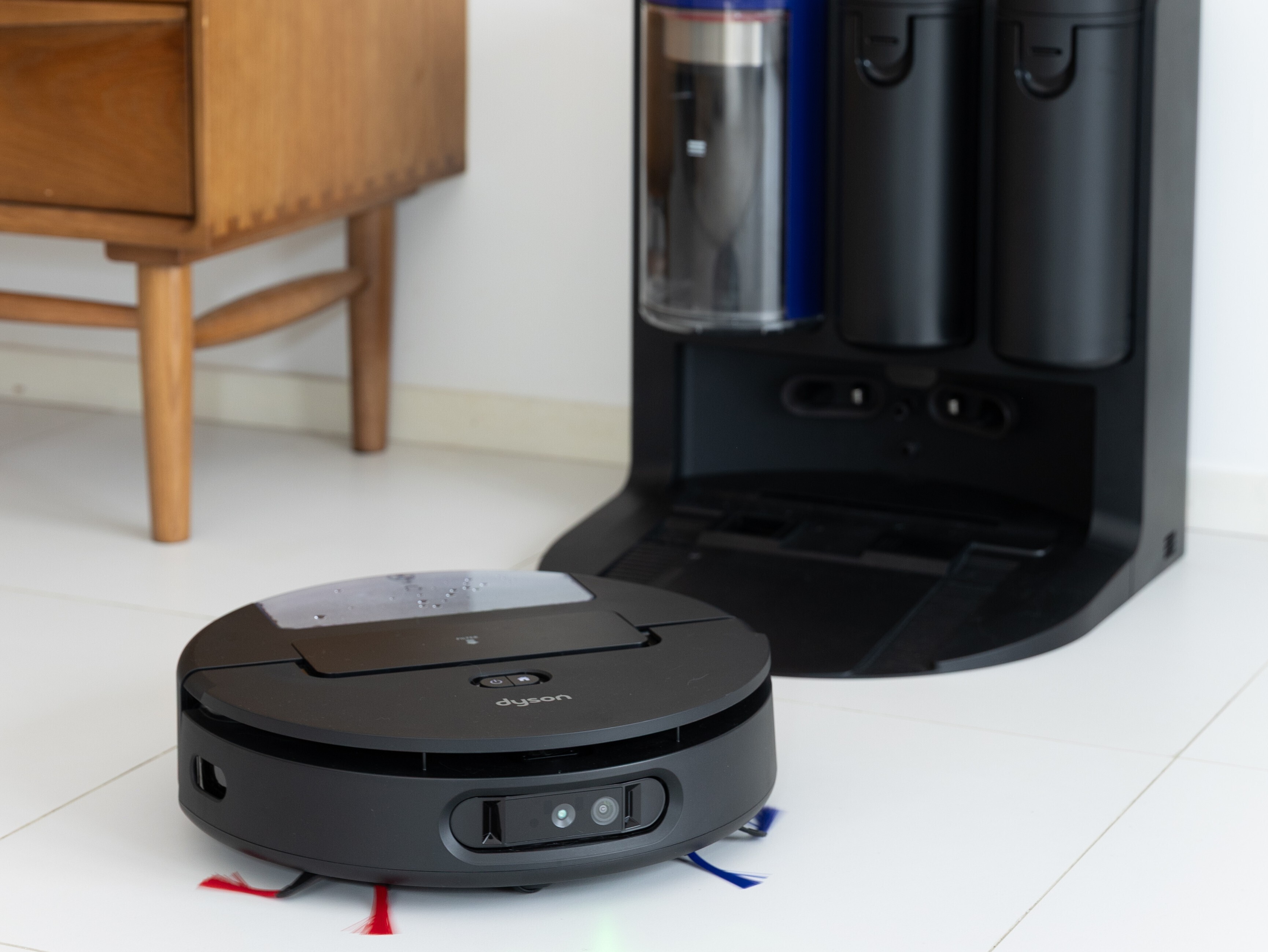 60°C熱水清潔及45°C熱風烘乾功能,讓機身維護更衛生輕鬆;200分鐘的運行時長意味著機械人能夠進行更長時間的清潔。當電池電量不足時,機械人會自動返回充電座充電。Dyson標誌性的雙重過濾技術亦被應用於機械人系統,在碎屑被充電底座清空同時,吸塵機械人及底座中的濾網可捕捉小至0.1微米的灰塵顆粒。