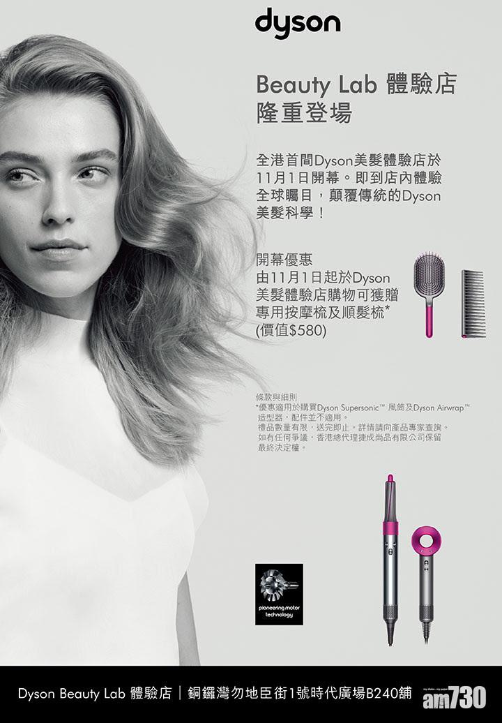 人氣家電品牌Dyson位於銅鑼灣時代廣場的Beauty Lab體驗店已於上周五開業。各位可以親臨店內體驗Dyson的美髮產品,包括Supersonic風筒及Airwrap造型器等。在店內購買指定產品更可獲贈送價值580元的專用按摩梳及順髮梳。