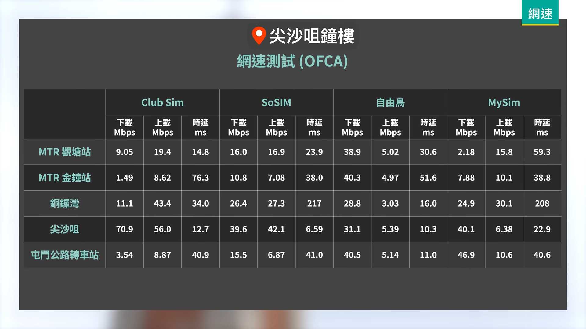 綜合五個地點的測試結果來看,自由鳥的下載速度在四間電訊商中表現較佳,而上載速度方面,Club Sim稍微優於其他三家,然而,SoSim雖然網絡表現不是最好,也不是最差,但在表現上比較平均和穩定。考慮到這四間電訊商的平均月費不到$100,再加上測試結果顯示的網路速度,其實已足以應付大多數人的日常需求,例如上網、觀看劇集、進行視訊會議等都完全沒有問題,表現可與傳統上台月費的服務相媲美。
