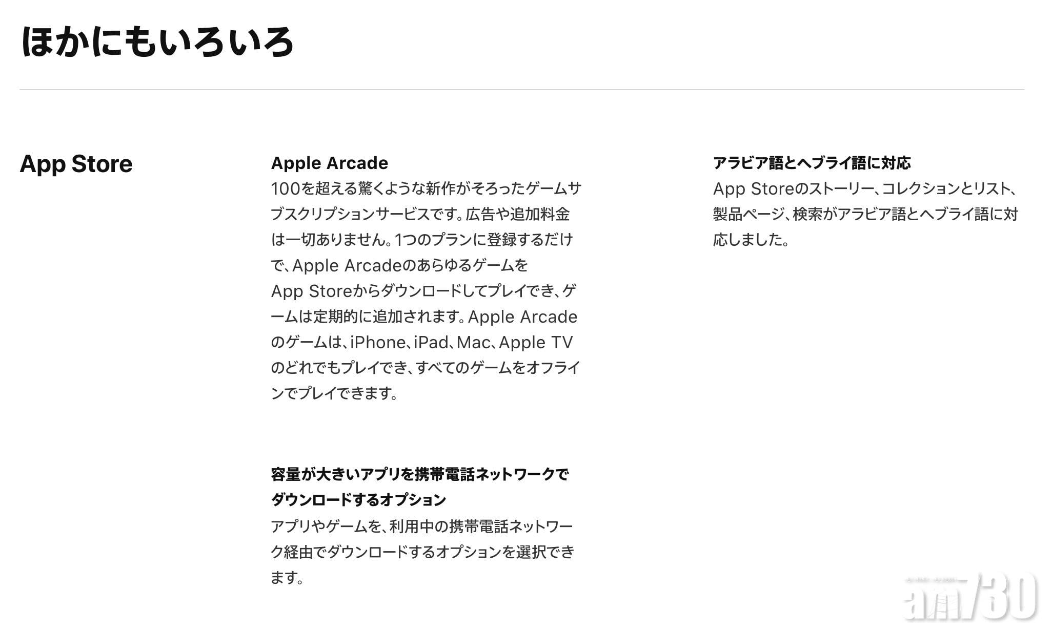 香港蘋果網站介紹iOS 13「全部新功能」的網頁中,並沒有記載有關Apple Arcade的內容。