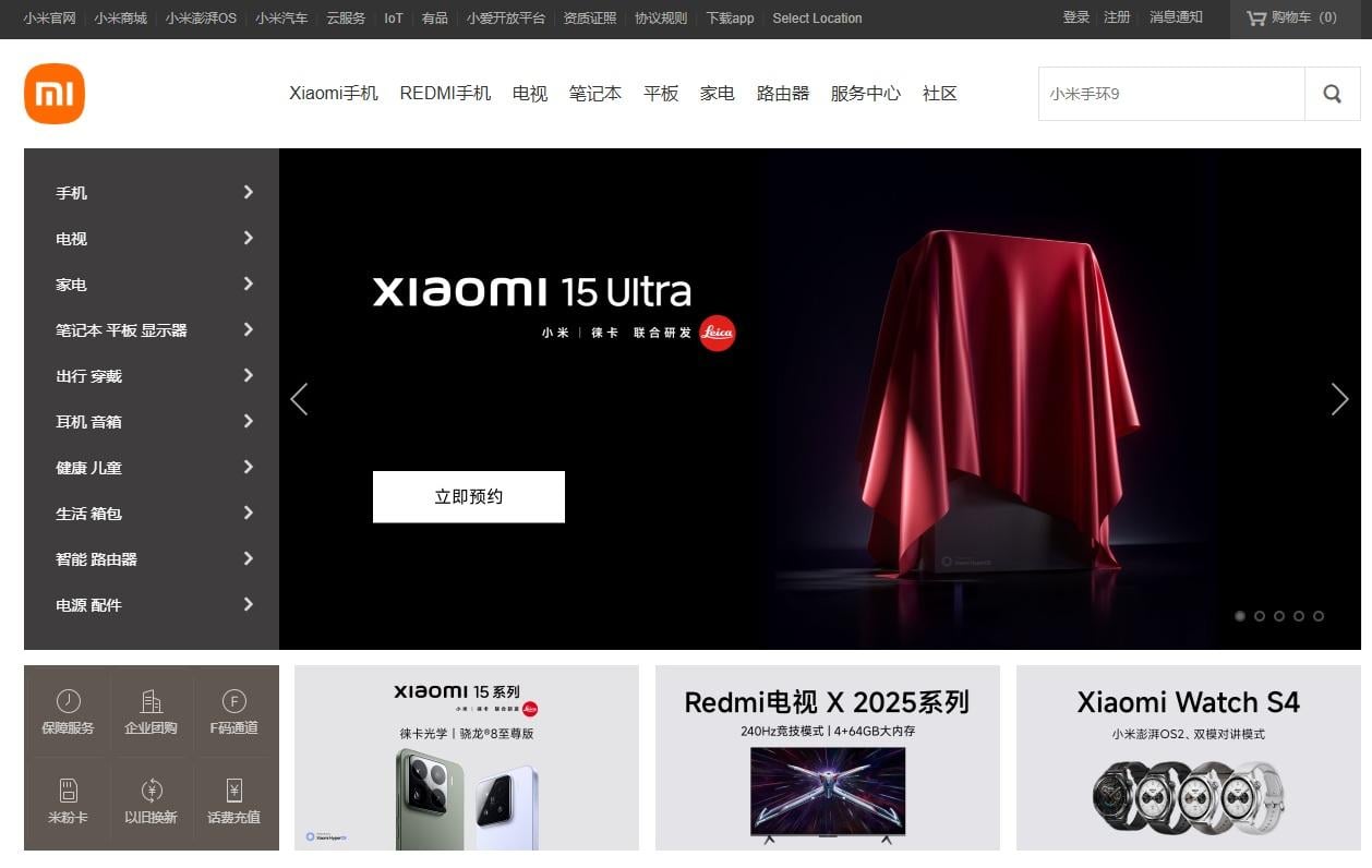 小米AI眼鏡據報提前在本月發布,與小米15 Ultra同台亮相。(小米官網截圖)