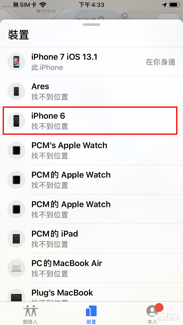 先找出你已遺失的iOS裝置,在此以iPhone 6示範。