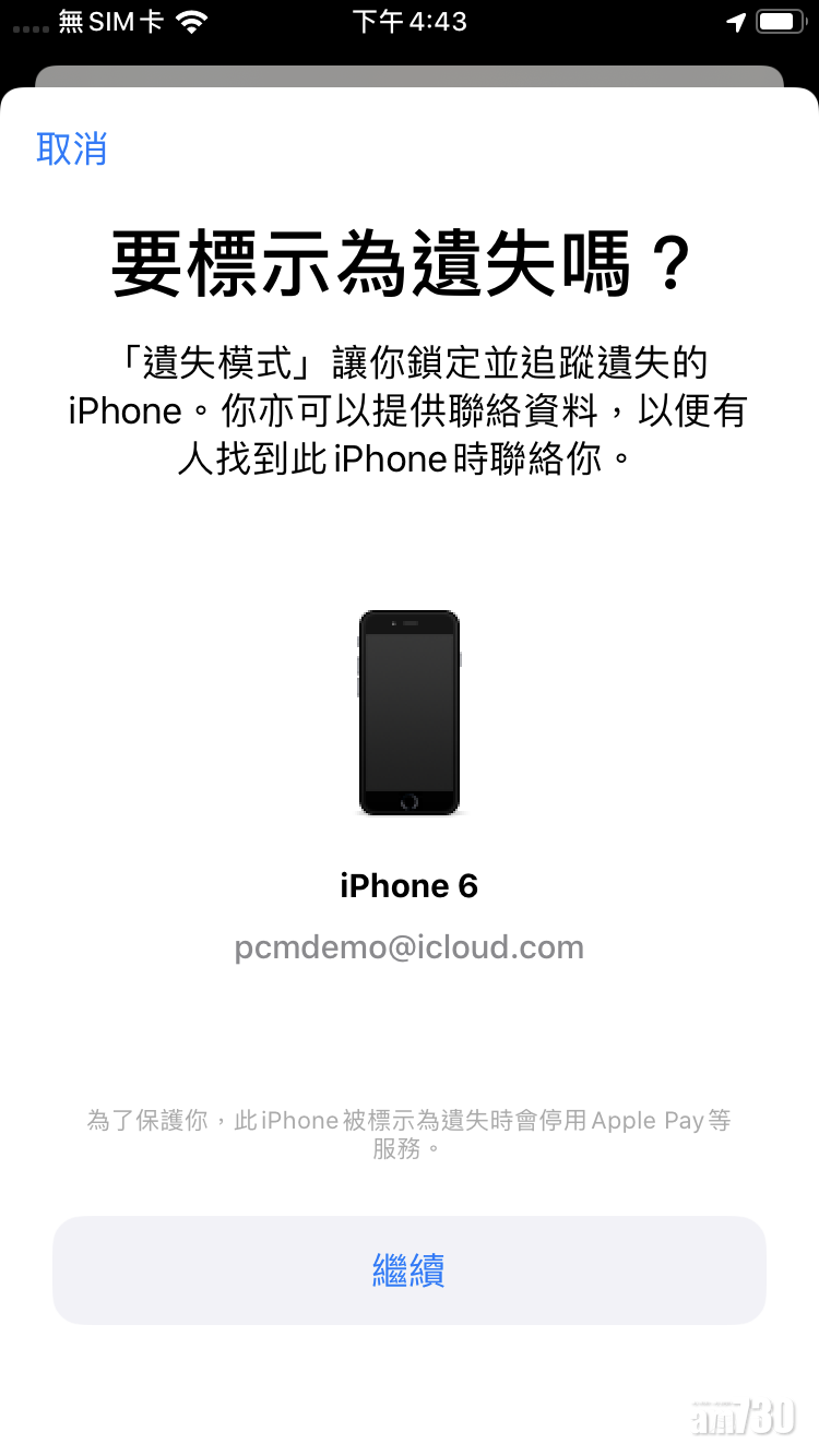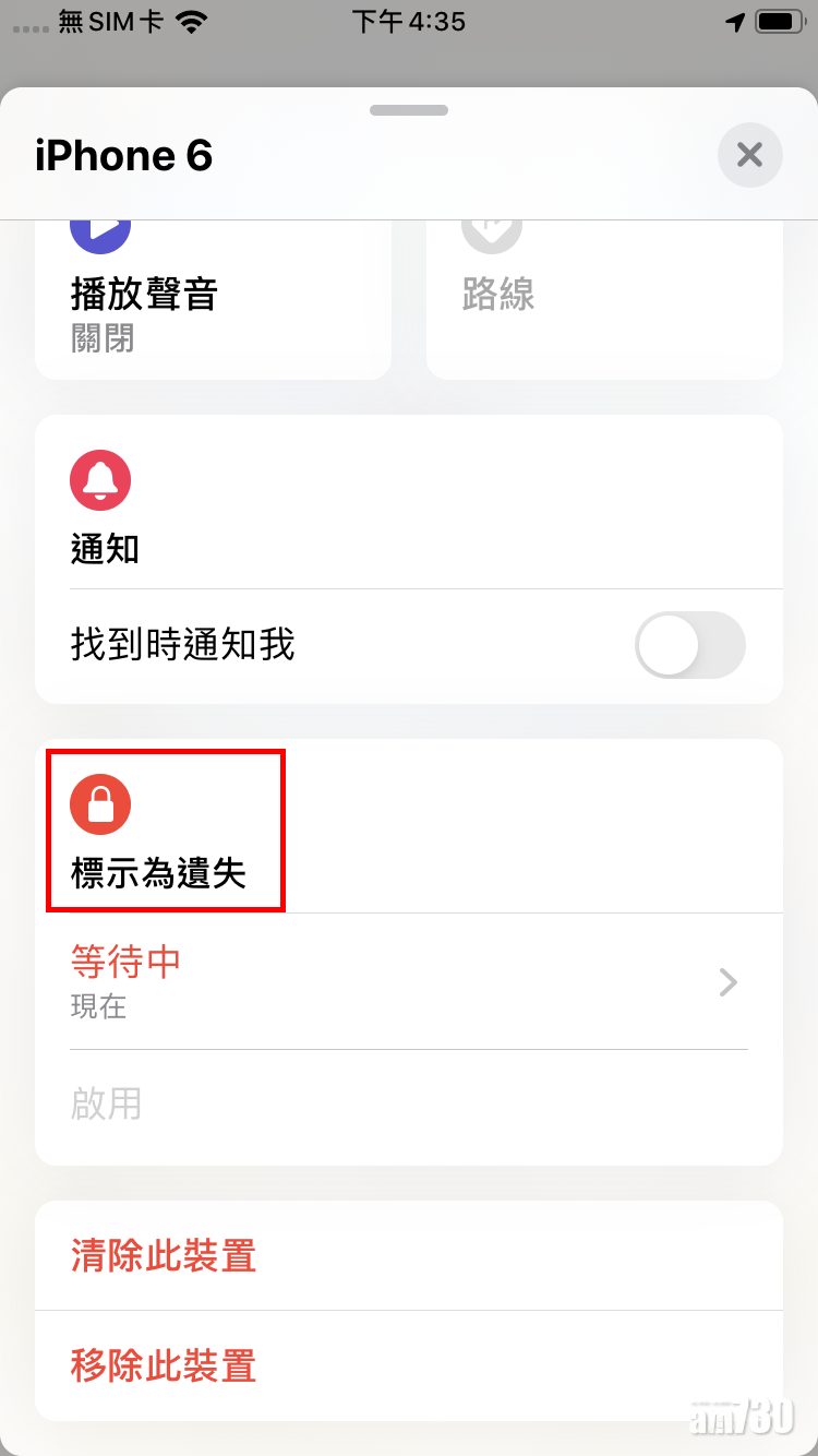 此時Find My就會將目標裝置啟動成「遺失模式」,可鎖定並追蹤裝置。