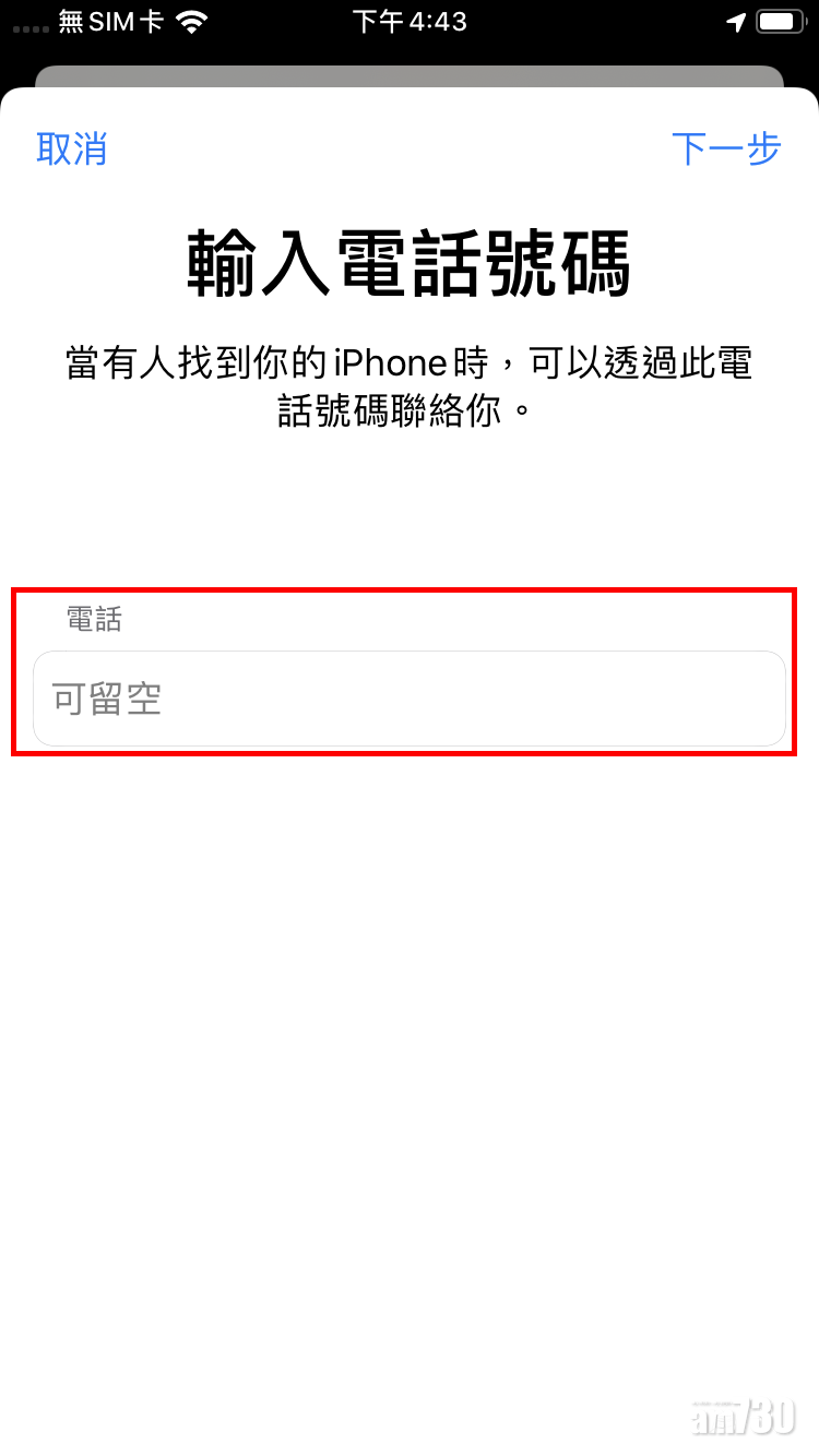 要輸入電話號碼,當有人拾獲裝置時可即時聯絡你。