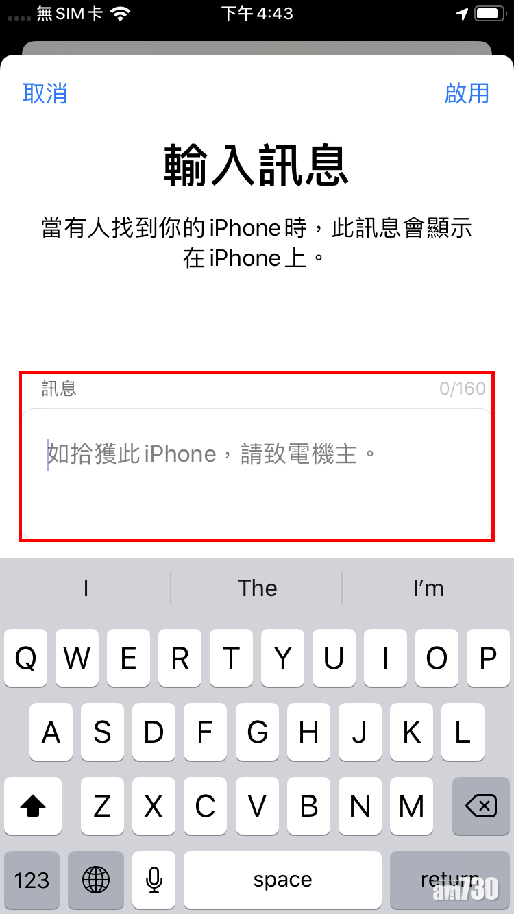 即使不輸入電話,亦可輸入訊息,使拾獲的人可瞭解如何處置。