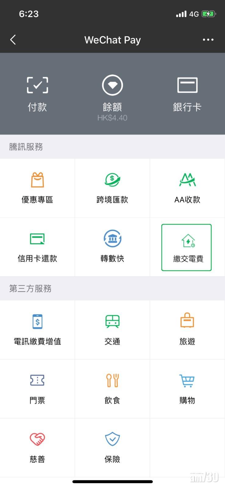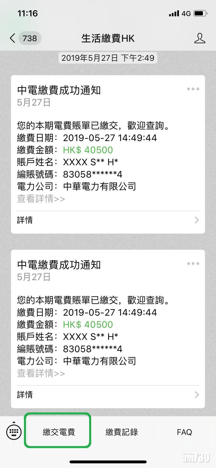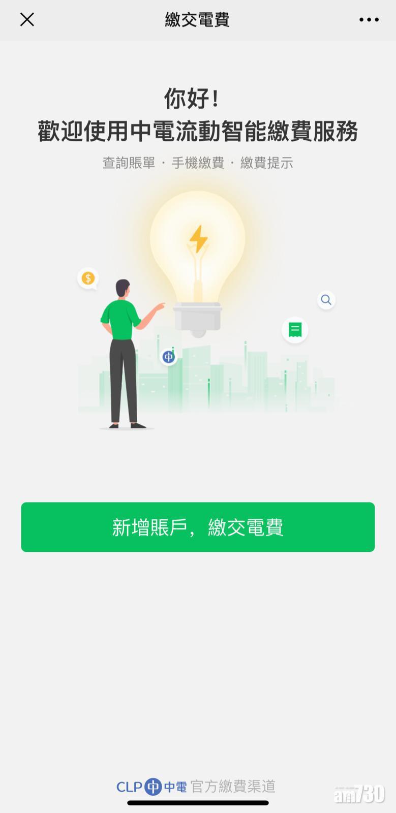 除WeChat Pay的「繳交電費」功能外,也可以在WeChat關注「生活繳費HK」官方帳戶後,也可以在官方帳戶裡交電費。