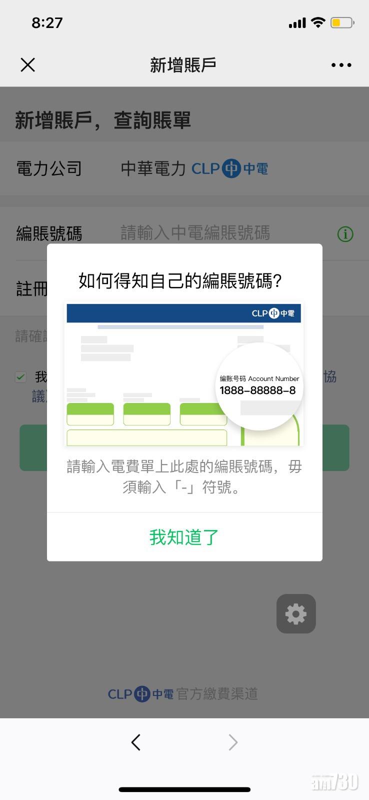 大家可以在中電電費單右邊找到編帳號碼,以綁定到電子錢包裡。