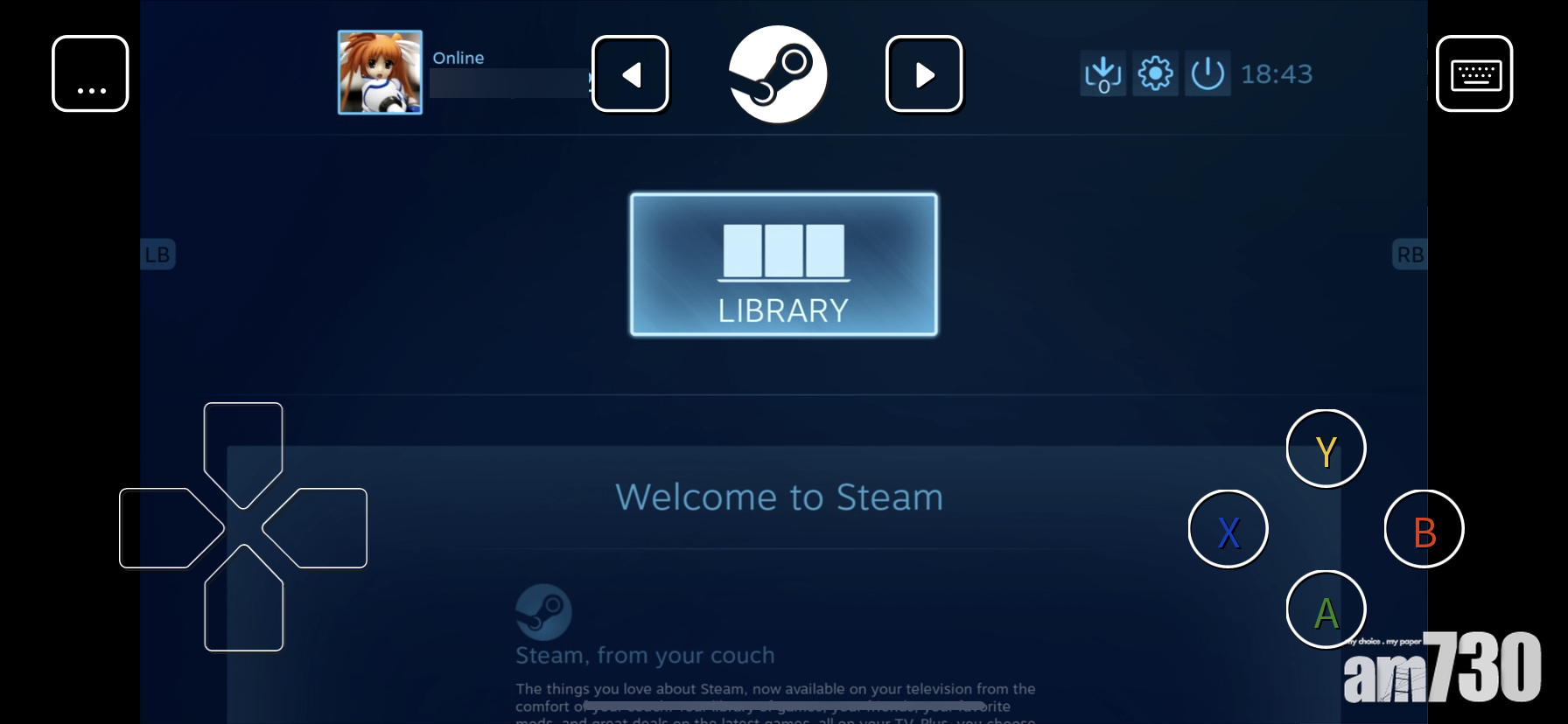 主畫面,使用虛擬手掣的十字掣在控制項之間移動,選擇Library會列出已購入的遊戲。