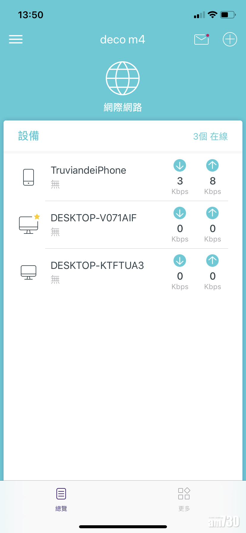 安裝方面,TP-Link Deco M4只需連接預設Wi-Fi,便可用手機程式進行安裝。大約5至6分鐘便設定好3台分機,毋須開啟藍牙或等待長時間尋找分機,安裝過程非常順暢。