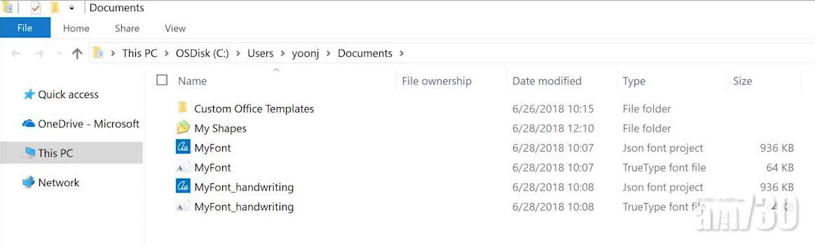 前往「Documents」文件夾裡,找到剛創建的TTF字體檔;