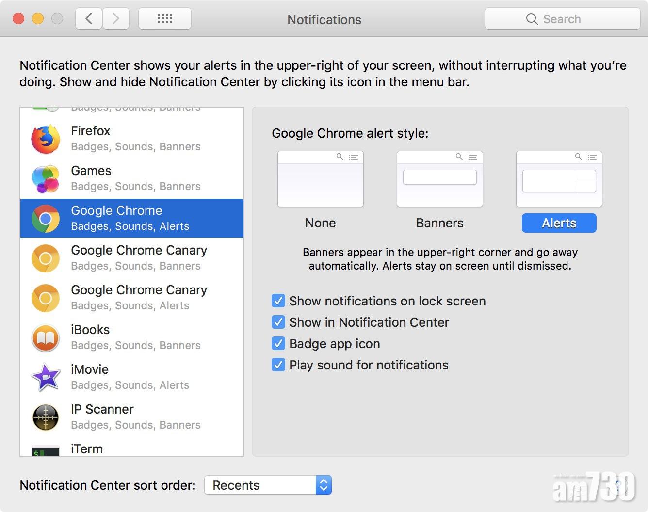 可以開啟Mac或PC的通知中心,接收來自瀏覽器的通知信息。