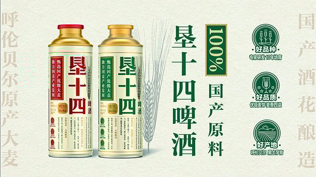 「墾十四」啤酒是振興中國種植的大麥項目的高端創新產品,承載華潤啤酒助力本土農業、推動產業鏈可持續發展的社會責任與承擔。