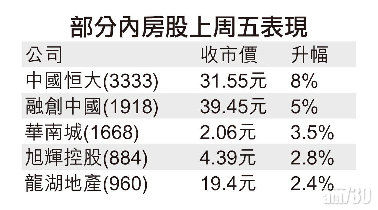 十九大未有提出進一步收緊房地產政策,內房股上周五表現回穩。當中,獲華人置業(127)進一步增持的中國恒大(3333)更升8%。不過,中國住房與城鄉建設部部長王蒙徽預料,今年第四季度全國樓市將延續成交量增速回落、成交價格趨穩定走勢,全年樓市走勢則保持目前平穩運行的趨勢。分析料,未來買股首選擇執行力較強的內房。