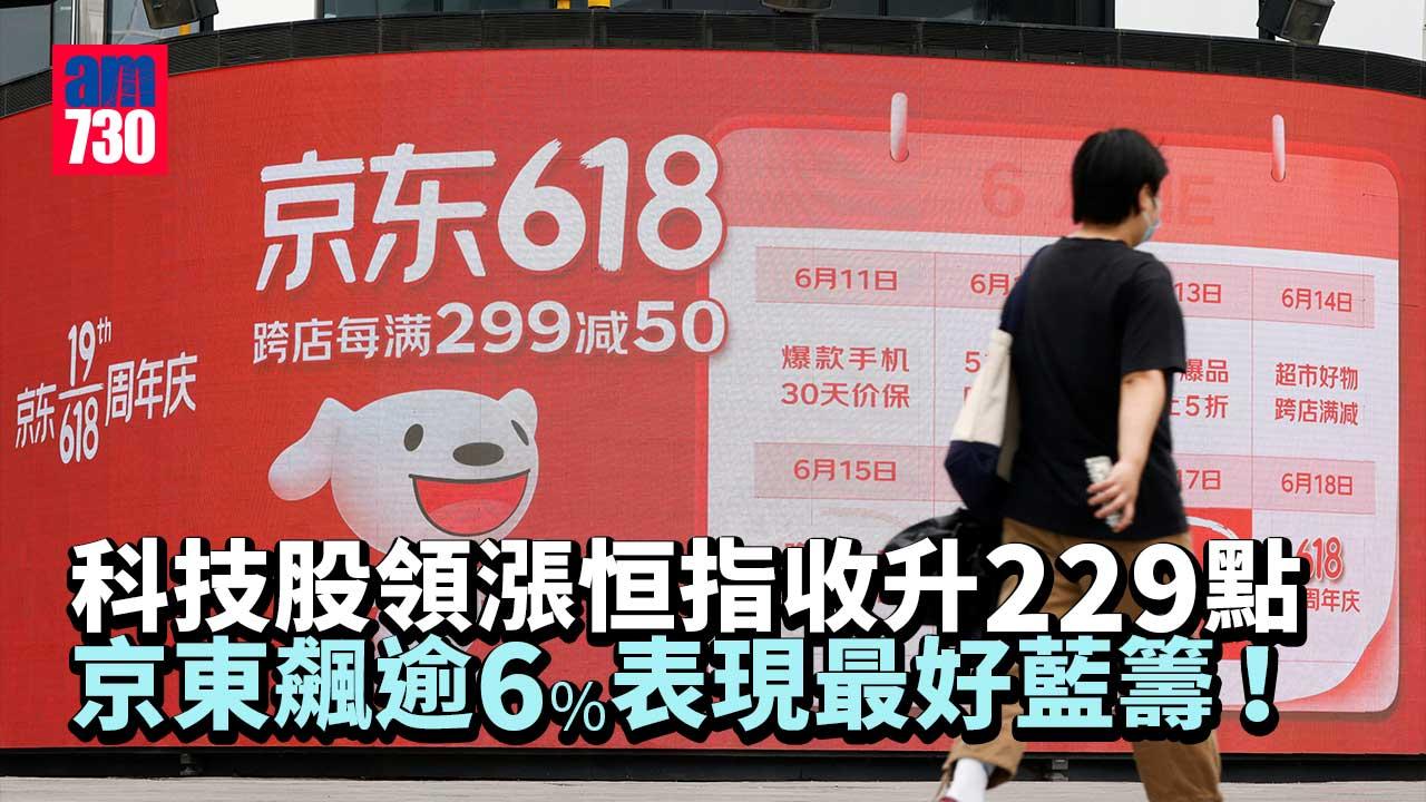 科技股領漲恒指收升229點 京東飆逾6%表現最好藍籌!