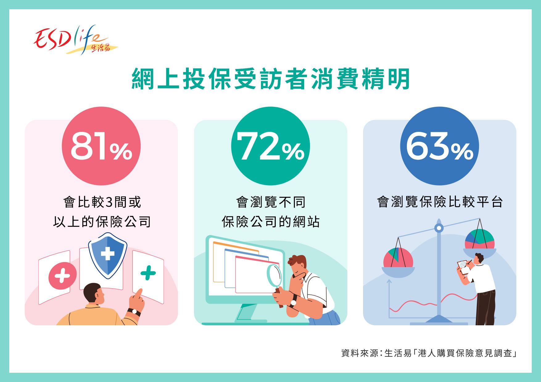 調查發現,近 9 成受訪者認同網上投保已成趨勢並有意於網上自行投保,以上原因及數字反映在網上購買保險是港人除了經中介或代理人投保之外的另一主要途徑。