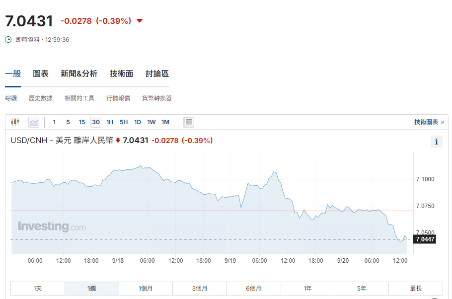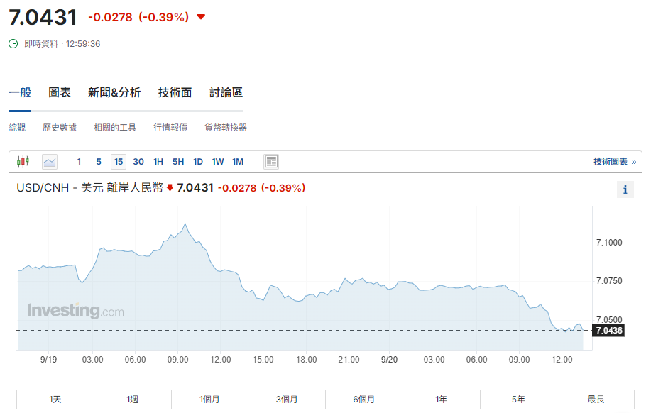 截至1時48分,在岸價報7.044(CNY);離岸價(CNH)報7.0431。人民幣兌美元中間價報7.0644。