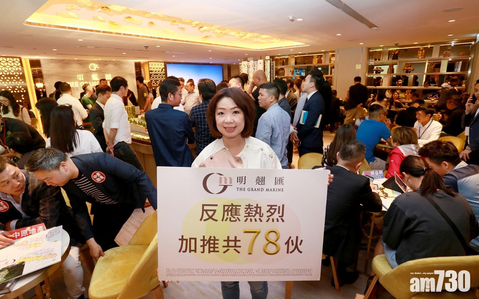佳明營業及市務總監顏景鳳表示,項目暫收逾1,500票,收票客中葵青區佔80%,外區佔20%,由於市場反應熱烈,故加推78個單位,連同首張價單合共推出234個單位。她指,兩張價單合共而言,以選用「建築期付款計劃」計算,折實後800萬元以下單位有193個,佔兩張價單推出單位數目逾80%,預計下周內開賣。