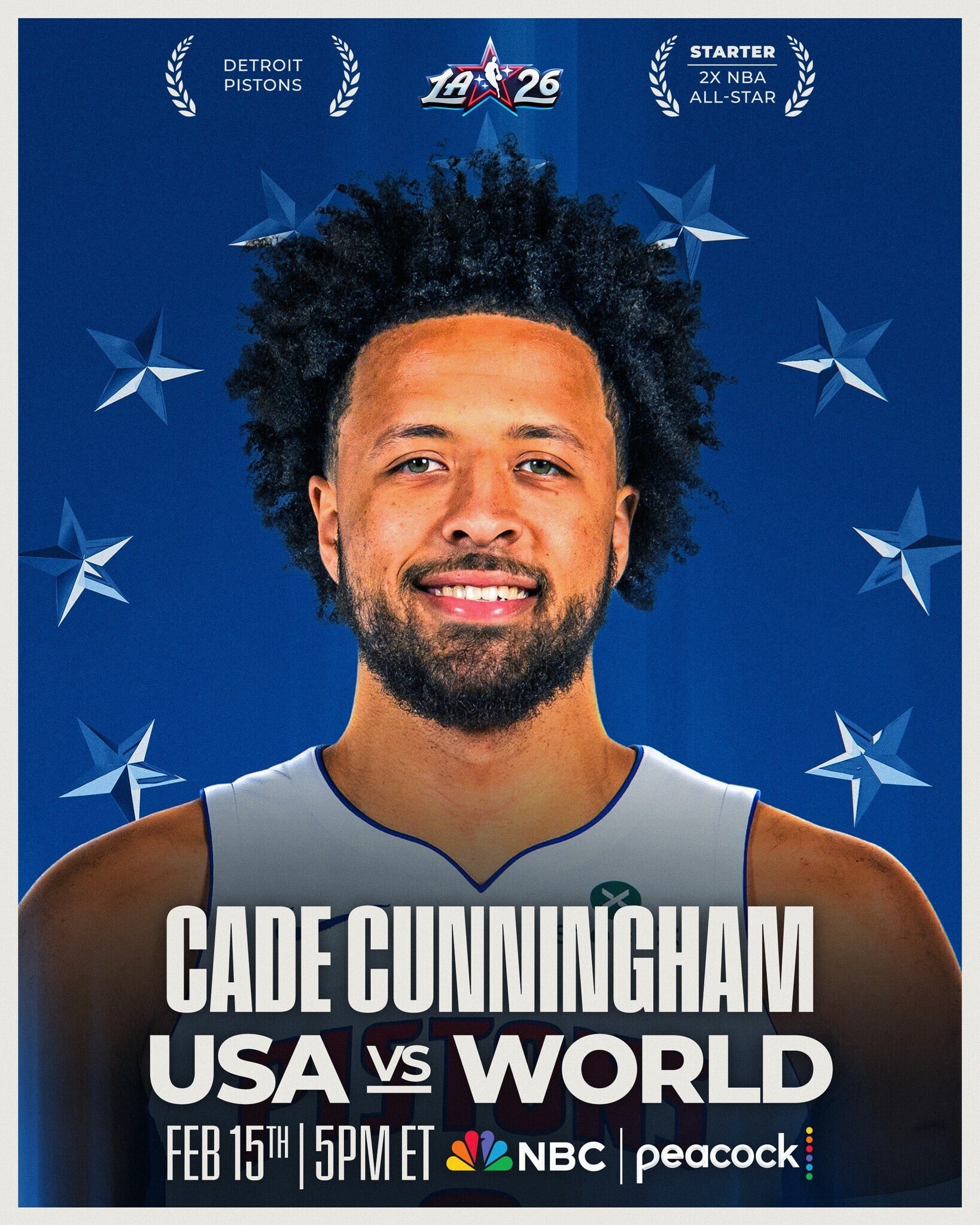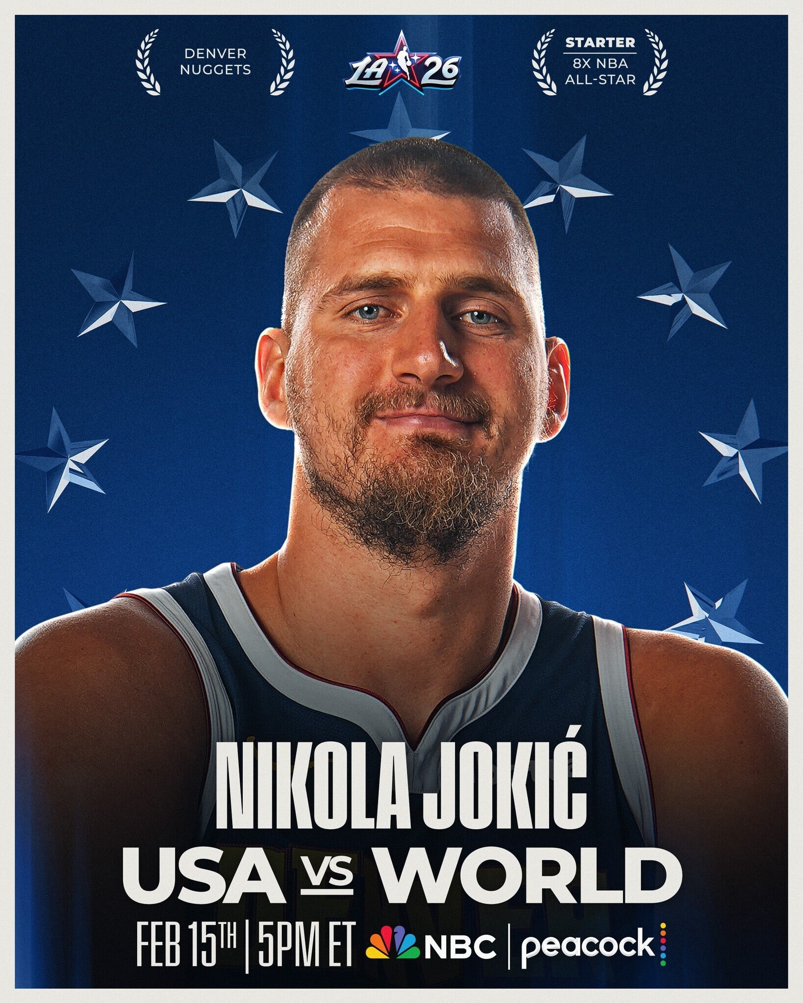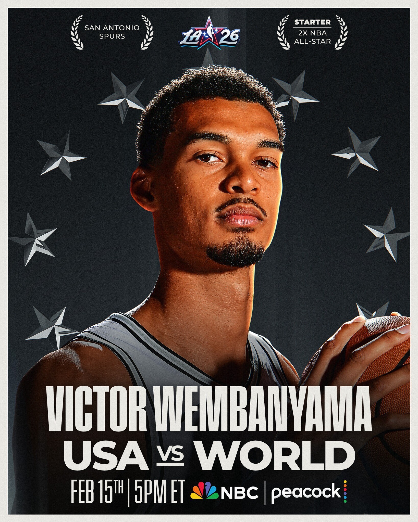 後備球員將會由NBA的教練們在星期日餘下的14個後備球員,今年的明星賽採用美國隊對世界隊的方式,當中會有2支美國隊及1支世界隊。而目前的10位正選球員,剛好是5位美國及5位非美國球員。最後如果總數少過16位美國球員或8位國際球員,將會由NBA總裁蕭華(Adam Silver)點出人選,以填滿各隊人數。今年賽事會於2月15日在洛杉磯快艇的主場舉行。