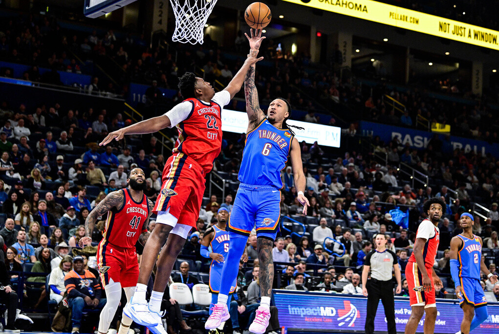 雷霆因為受傷,缺少了謝倫威廉士(Jalen Williams)、赫頓史丹(Isaiah Hartenstein)及卡臣華萊士(Cason Wallace)3個主力,還有後備的卡魯素(Alex Caruso)。球隊之前已連輸2場,令球隊今季累積至第10場敗仗。面對賽前2連勝的鵜鶘,兩隊首節齊齊手緊,鵜鶘全節26投4中,得14分,而雷霆也好不了多少,只取17分。兩隊第2節回復狀況之後,半場雷霆領先48:46。第3節,雷霆在賀姆根(Chet Holmgren)單節攻入14分之下,為球隊開始拉開差距,加上SGA在第4節亦有10分貢獻,令雷霆以104:95贏波,避免今季首次的3連敗。SGA今場個人取得29分,不過隊友的賀姆根瞻前顧後,個人攻入20分之餘,更取得14個籃板以及5次封阻。後備的伊沙亞祖(Isaiah Joe)亦有17分的貢獻。雷霆目前以38勝10負繼續在常規賽領先。