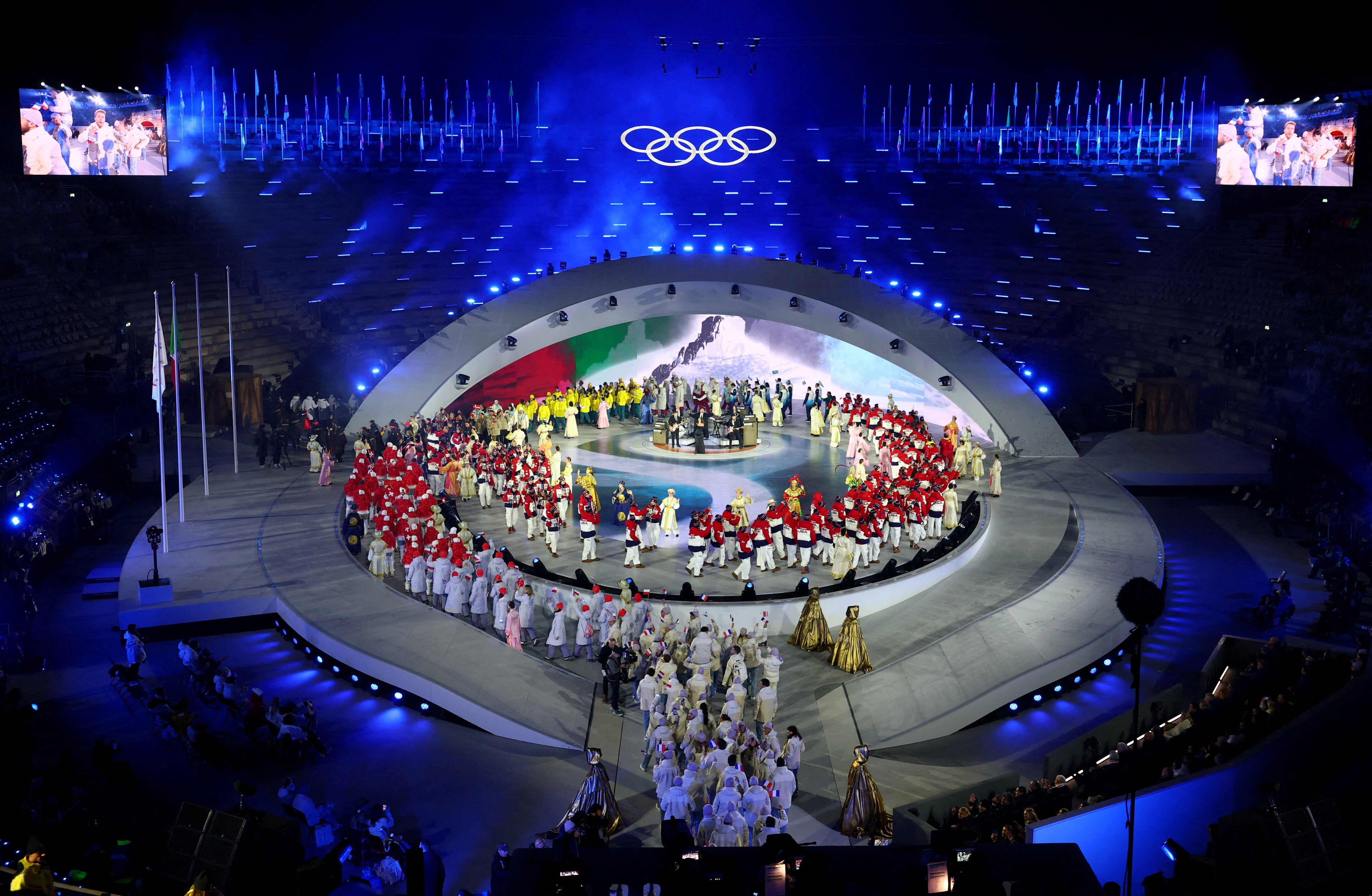 米蘭科爾蒂納冬奧會,在意大利維羅納競技場,舉行閉幕儀式。(路透社)