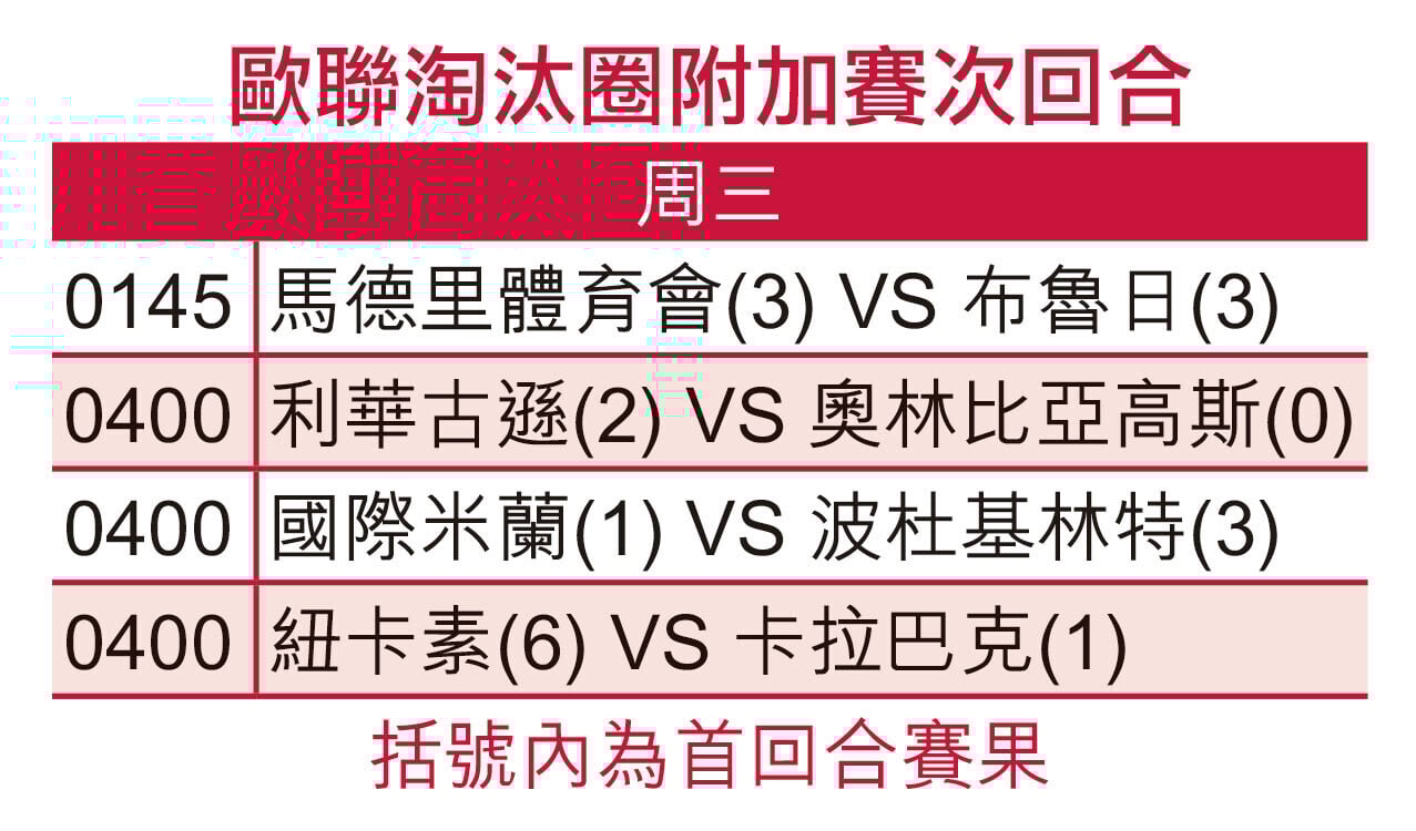 意甲「一哥」國際米蘭已無退路,但敗走挪威後更收到壞消息,該場傷出的王牌射手拿達路馬天尼斯要休息一個月;馬古斯杜林今場將會跟比奧艾斯保薛圖合作攻堅,但該對進攻組合剛戰意甲鬥弱旅萊切,顆粒無收,球隊要靠兩位後備出場的守將入波制勝。二人今場要在歐聯大舞台助國米反勝對手入16強,機會不大。