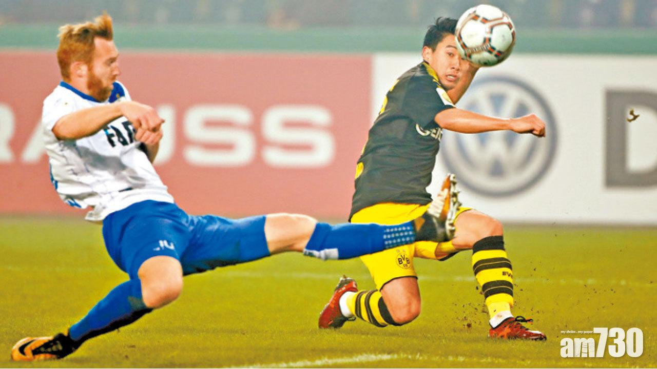 德國盃次圈,衛冕的多蒙特作客丙組球隊馬格德堡,憑卡斯特羅、阿歷山大伊沙克、耶莫蘭高(12碼)、馬斯巴查及香川真司(右)各建一功,以5比0大炒對手,晉身第三圈。(路透社)