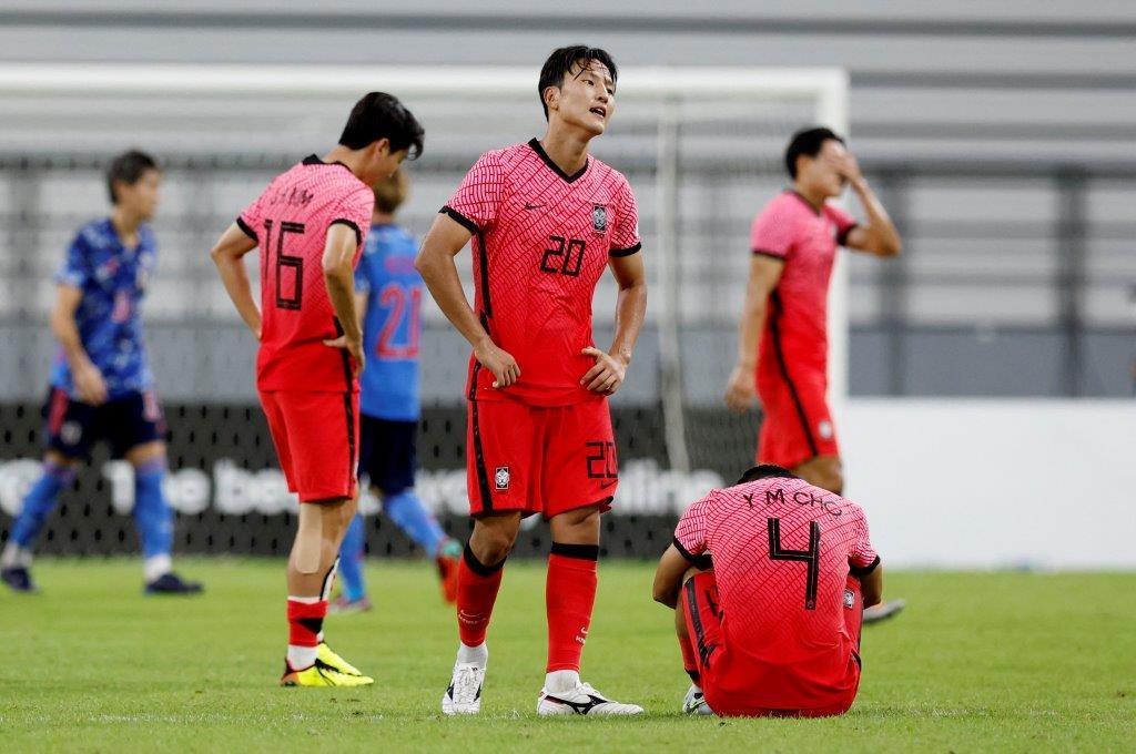 之前兩輪全勝的「太極虎」,今仗未能取得優勢,反而非勝不可的日本,全場採取主動組織進攻,上半場日本有一次攻門中遠柱門柱不入,南韓逃過一劫,0比0完上半場。