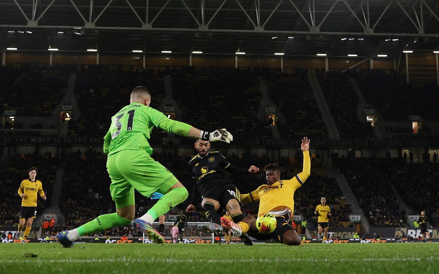 因為狼隊球迷號召,延遲15分鐘入場向球會的老闆,中國復星集團抗議。而曼聯就在25分鐘才打開紀錄,般奴費南迪斯禁區內把握到機會射入。而狼隊在上半場補時的2分鐘,由比拿加迪(Jean-Ricner Bellegarde)把握到機會,結束球隊540分鐘的入球荒,半場追平1:1。然而換邊後僅6分鐘,麥比奧莫接應反擊,門前射入為曼聯再度領前,之後美臣蒙特62分鐘再下一城,令紅魔拉開比數。直到82分鐘,曼聯獲得12碼,般奴操刀為紅魔射成4:1,贏波的曼聯以25分升上聯賽第6,與車路士同分,落後第4的水晶宮1分。