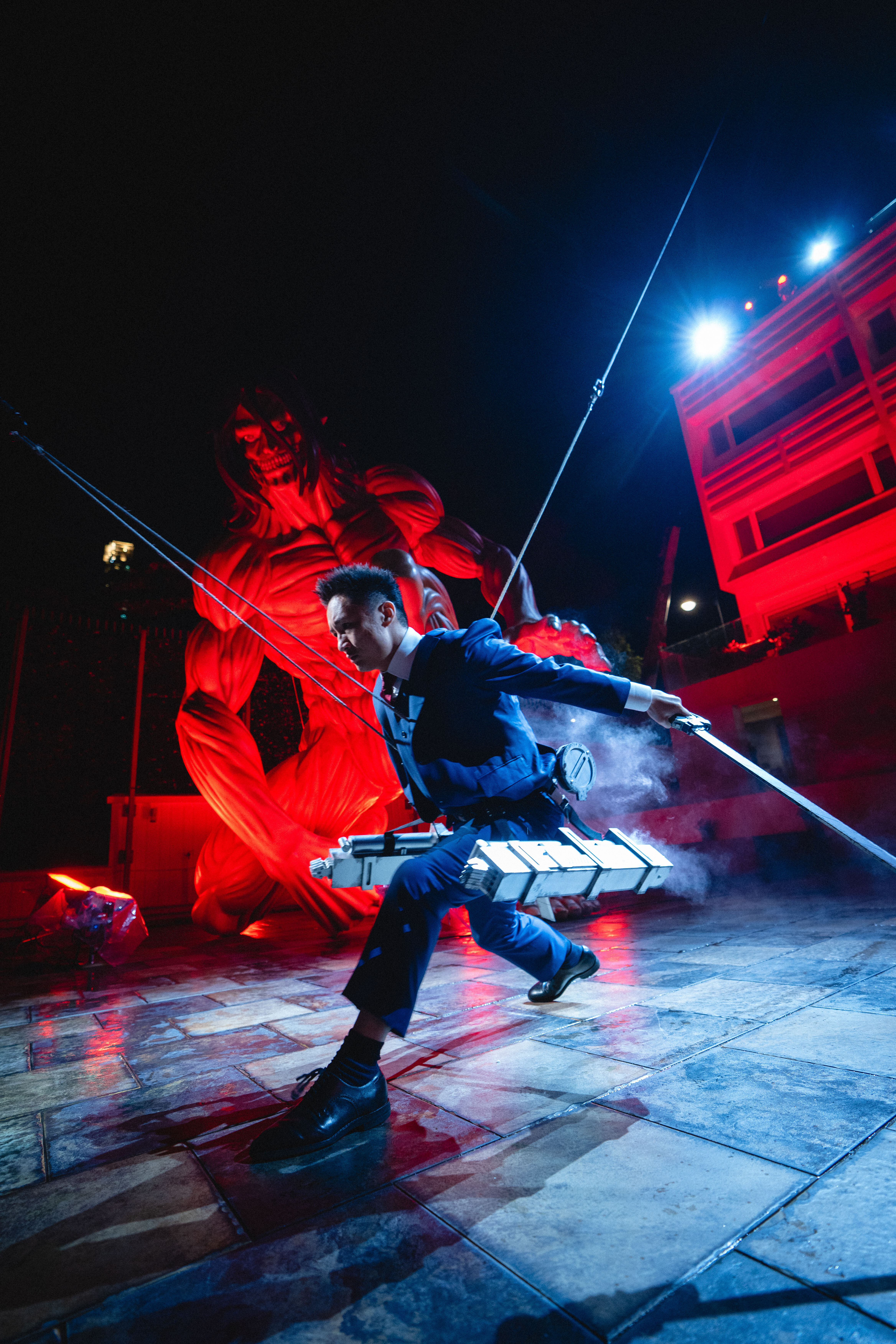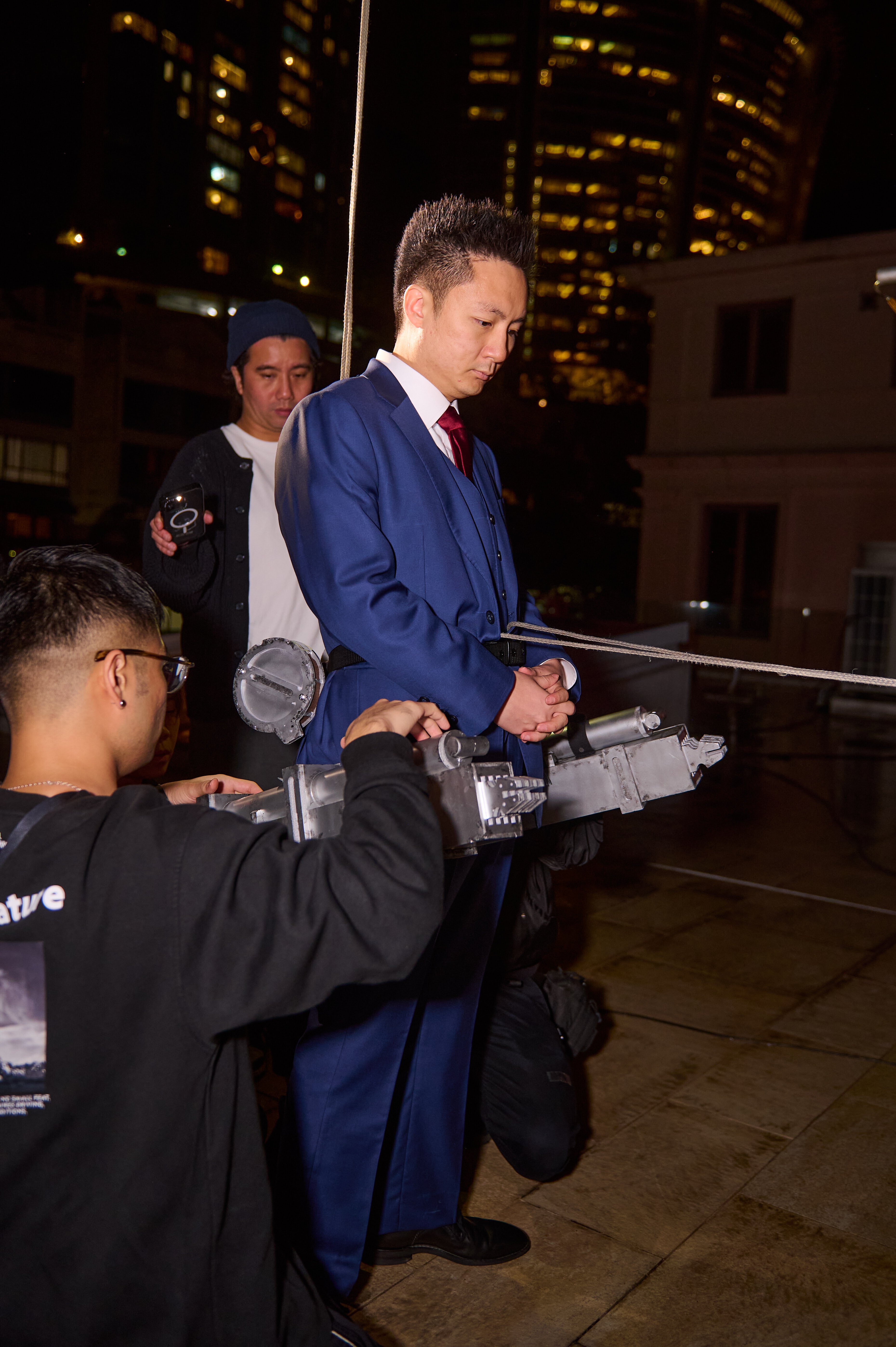 整個仿《進撃的巨人》求婚企劃交由專業電影導演組聯同動作特技團隊策劃,並在大宅內搭建威也裝置,完成高難度高空鏡頭。據悉,製作團隊曾就安全考量建議以替身處理最危險部分,但鍾培生堅持親力親為親自上陣,並早於 2 個月前開始密集彩排,反覆調整落地步伐與走位。有現場工作人員透露,他為求「落地後第一步要穩要定」,練到手臂及膝蓋多處瘀傷仍未肯收手;求婚當日他在頂樓位置短暫閉目深呼吸,為求整個求婚過程萬無一失。鍾培生指:「效果可以交俾人做,但求婚唔得。男人大丈夫所有嘢一定要自己落地完成。」