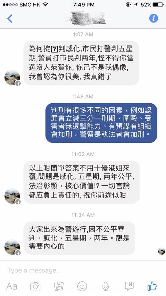 Caption2: 為甚麼有人對七警案的判斷這麼扭曲?(圖片來源:麥明詩臉書)