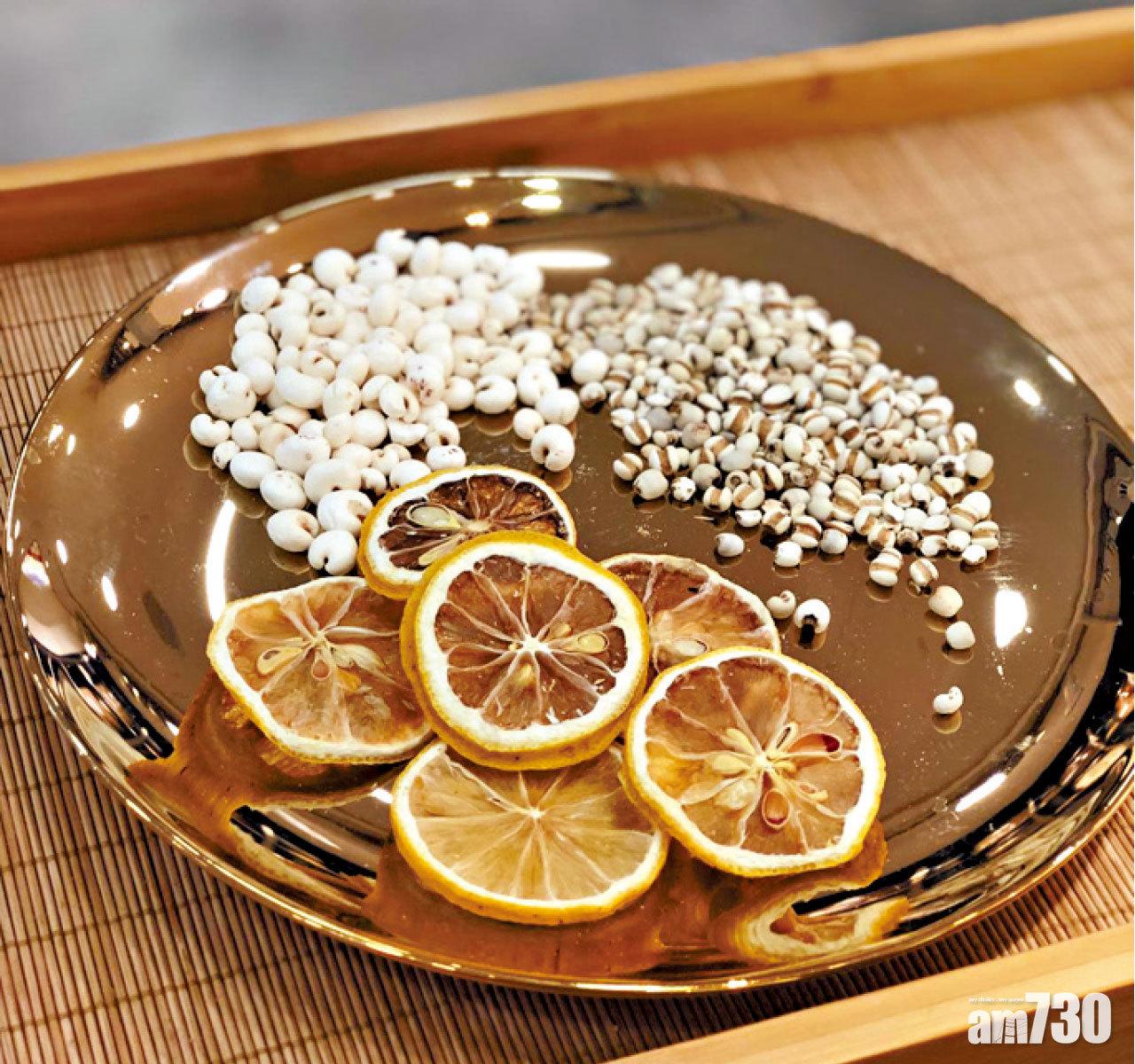 薏米除了是袪濕食材,也是美容食品,可令人皮膚細膩光滑,還有除斑療效。檸檬有防止及消除皮膚色素沉著(黑斑),達致美白效果,並有抗氧化作用,延緩衰老;豐富維他命C,有抗菌和提高免疫力作用。