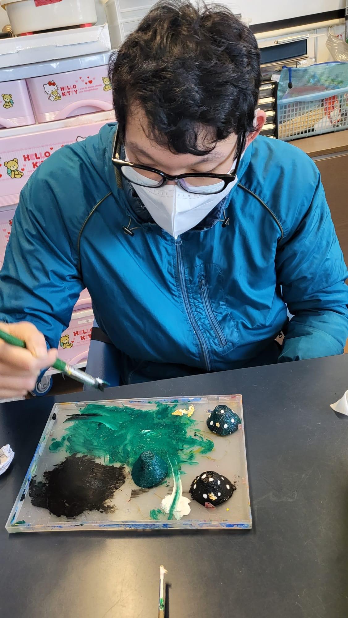 藝術探索是中心的日常訓練活動之一,導師或社工定期舉辦藝術手工堂,如讓學員們參與和諧粉彩及流體畫製作。這不單可促進他們的腦部發展,更是一個機會讓他們發揮創造力及提高參與度。中心亦會鼓勵學員們用非語言的方式進行溝通,例如透過眼睛或動作等表達自己想選擇的顏色和圖案,與身邊的人互動。學員的作品可以送贈給他們的照顧者,畫作未必是最優秀的作品,卻是學員在種種限制下,以最大的努力所創作的成果,可謂意義非凡,彌足珍貴。
