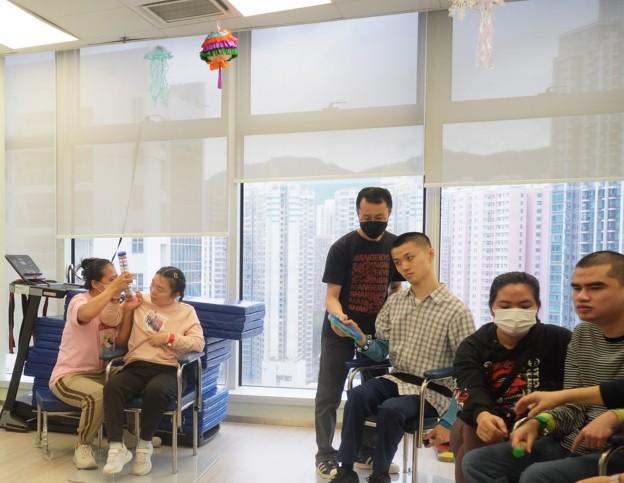 恩光每星期也會舉行兩節音樂治療活動,學員在專業的音樂治療師帶領下,隨著音樂時而以樂器伴奏,時而律動身躺沉浸在節拍和旋律;在大家合力演奏下,讓耳熟能詳的流行曲、從小聽到大的兒歌童謠等傳遍整個中心。