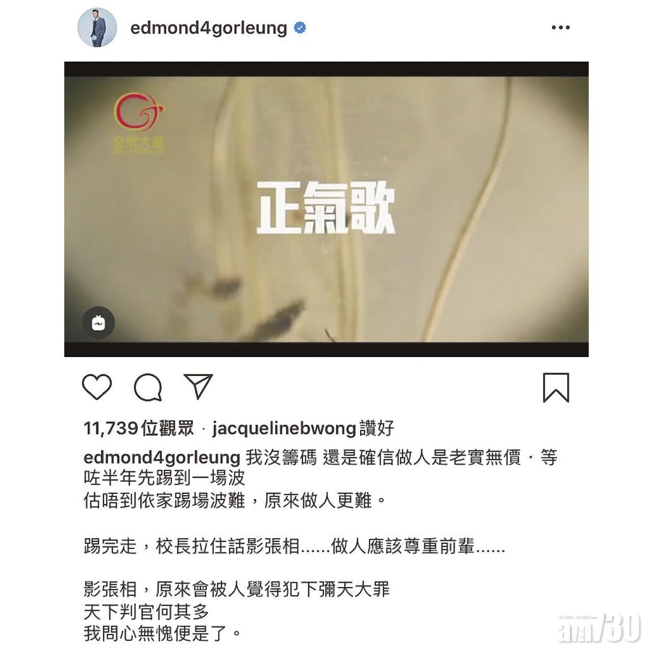 事後,梁漢文在個人專頁和IG回應。(網上截圖)