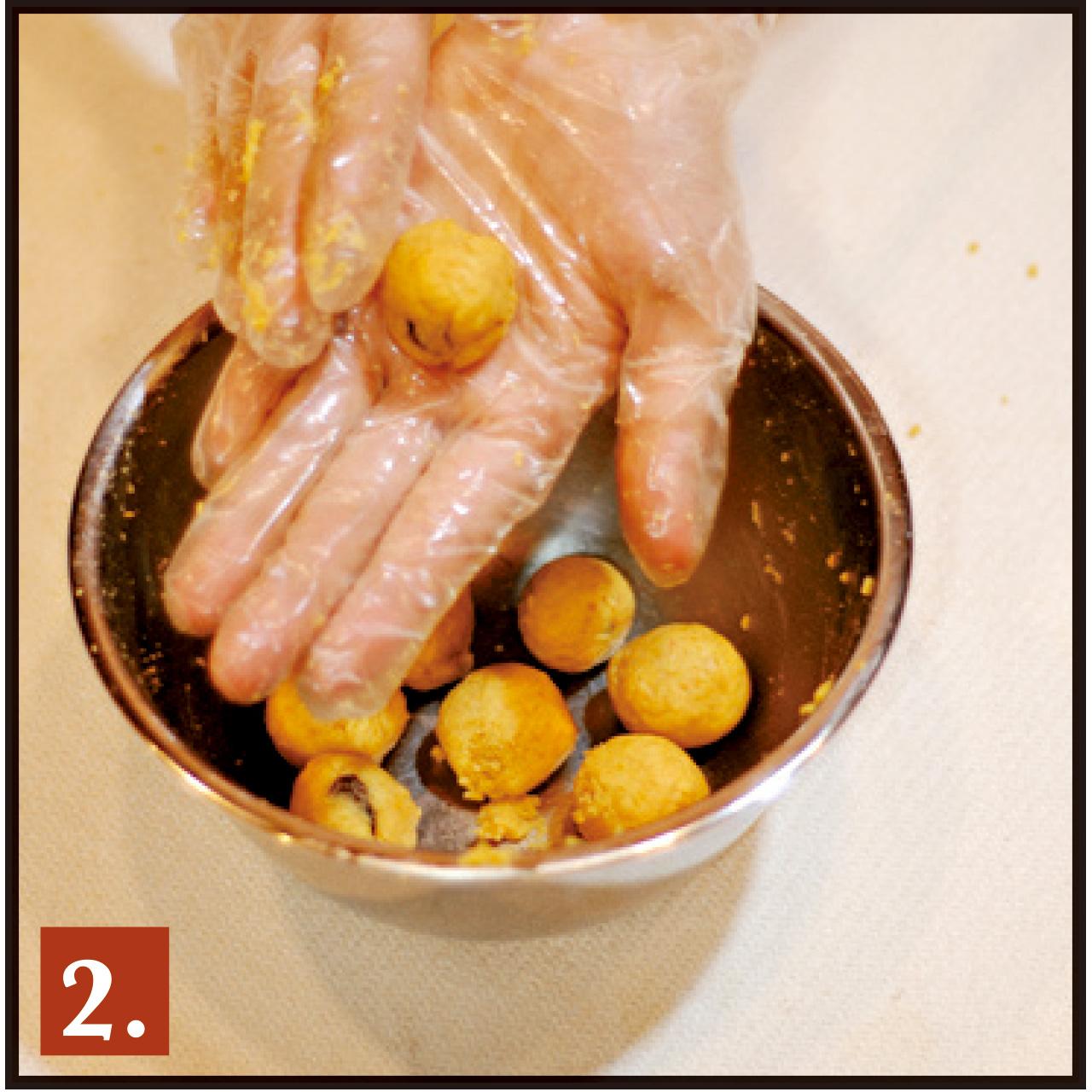 2.將蛋糕混合物分為8份再搓成圓球狀,放在雪櫃約15分鐘。
