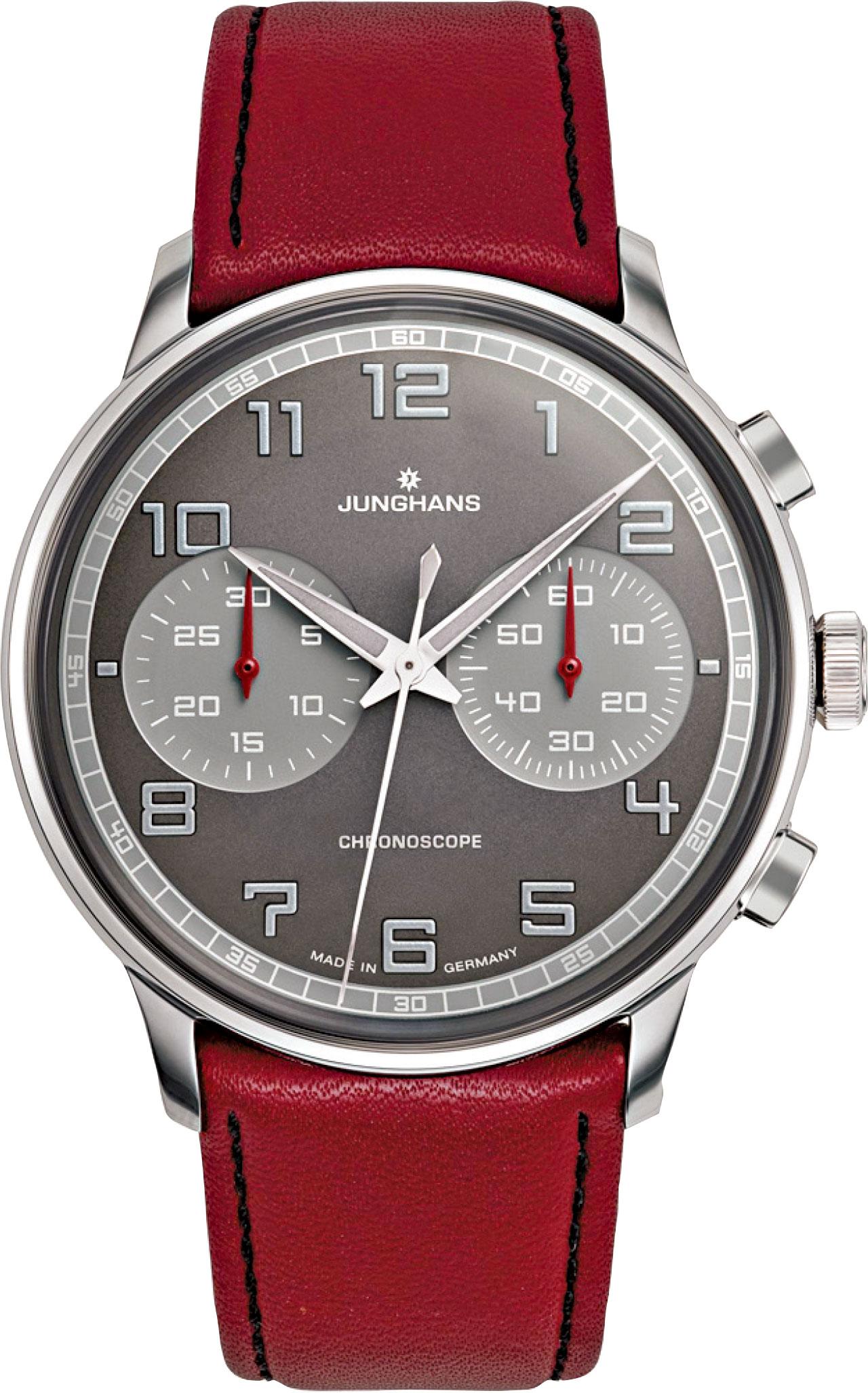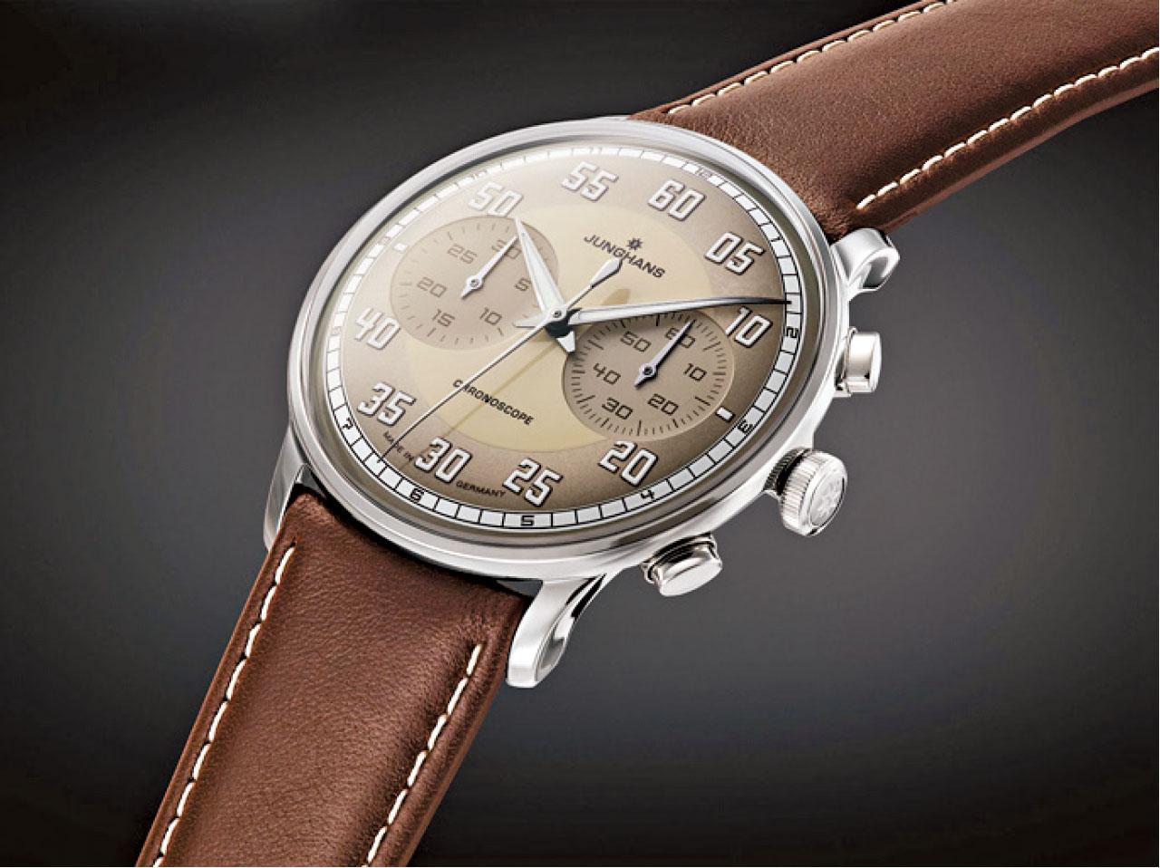 Junghans的作品一向都非常注重功能性和人性化。就以他們的Meister Driver大師系列駕駛員計時腕錶為例,不論你選擇淺咖啡色或是深灰色的錶盤,它們同樣擁有路軌式分/秒鐘標示外圈,分針和中央計時秒針的長度剛巧能達到這個外圈,讓你能非常精確的讀取時間。清晰的阿拉伯數字時標/分標上都塗上了環保夜光材料,讓夜間讀時保持清晰。恆動小秒針設於3時位置,30分鐘累積計時盤則設於9時位置。40.8毫米直徑的精鋼錶殼大小適中,配上拱形有機玻璃錶蓋,讓腕錶戴在手上有更纖薄的視覺效果。橢圓形計時按鈕比較少見,但很有特色而且手感上佳。2時位置按鈕負責計時啟動和停止,4時位置按鈕按下把計時指針歸零。