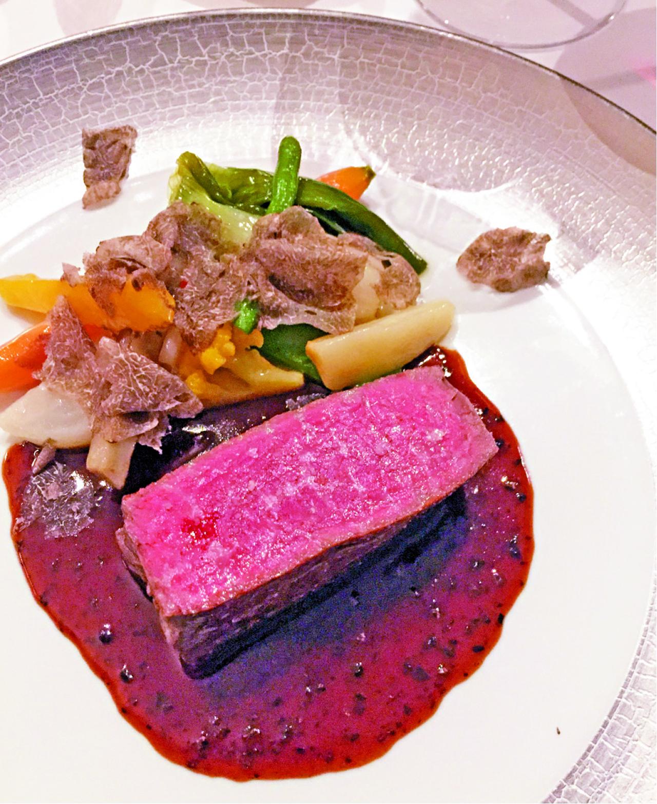 當然,還是要用自家味蕾去品嘗這星星的味道,東京店是由日本行政總廚厚東創主理,而Bouchet本人經常法日兩邊走監控指導。我那大餐剛好是他們16年最後的營業日所吃,5道菜的晚餐吃得出總廚能將極好的日本元素放到法國菜中,除了用上極佳的日本產食材,那道連皮燒的馬頭魚就有著日本懷石的處理的手法,再配合了法國菜重要的一環──醬汁,那香橙香檳汁與馬頭魚的脆身及魚肉軟綿成了有趣的對比。而更激賞的是主菜的和牛配黑松露醬,當中的砵酒、黑醋及大量的松露,令醬汁味道豐富,與和牛軟而味道不算極濃十分配合。最後,甜品是好吃得叫人再飽也能吃下,特別是那看似輕如鴻毛的Petits Fours,絕不敷衍,每件好吃的就是獨立完整的甜品,如此著重細緻,就是法日兩個民族對美的堅持呢。