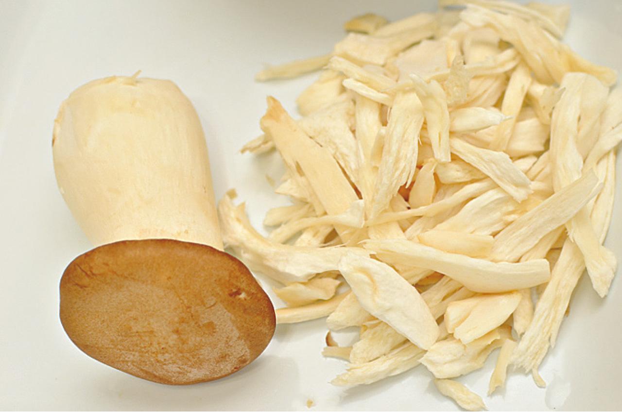 1.雞腿菇直切開二,撕成幼條狀,備用。