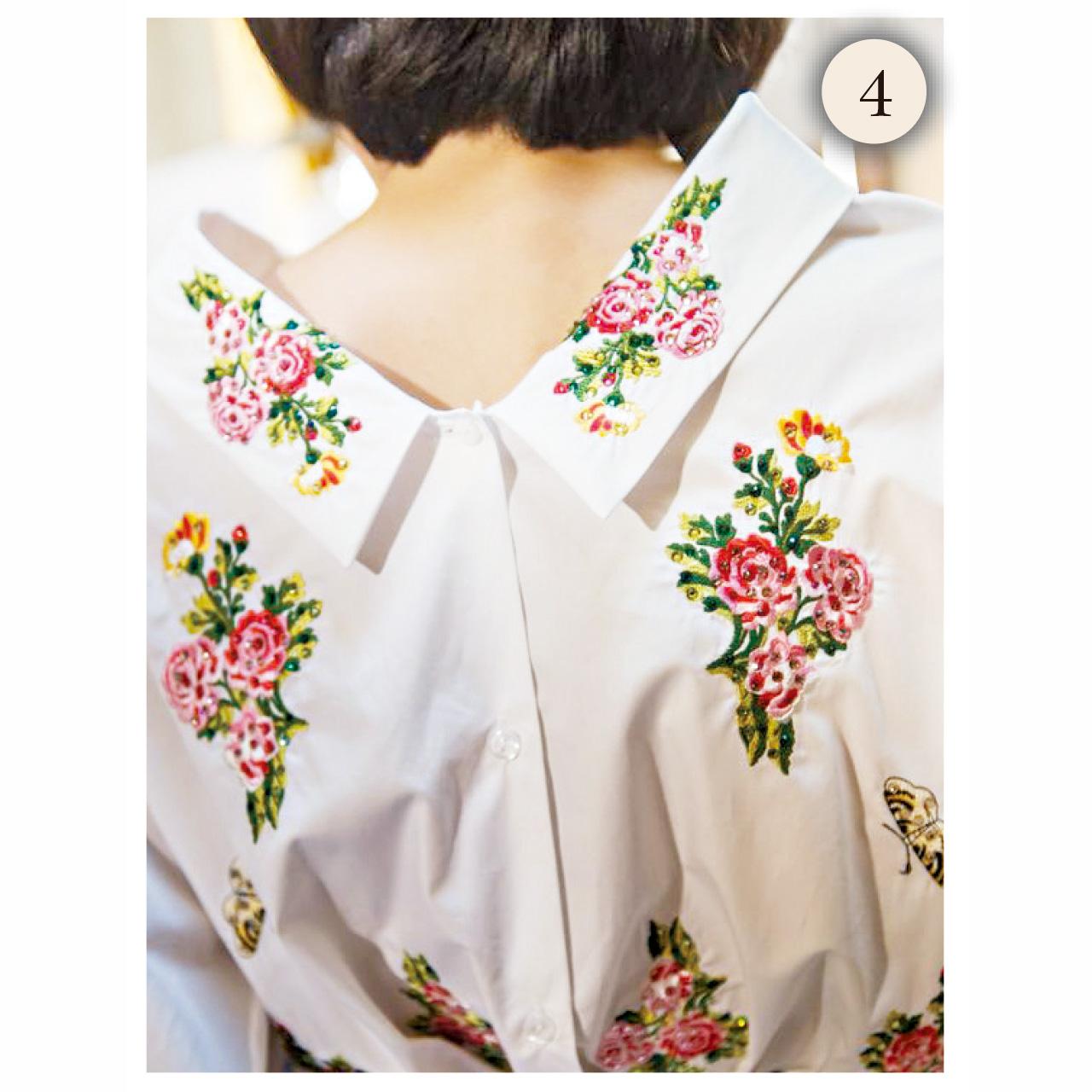 此外,文青們,會否考慮以刺繡花(圖4)恤衫配搭長裙?這樣打扮定能散發文藝氣質。