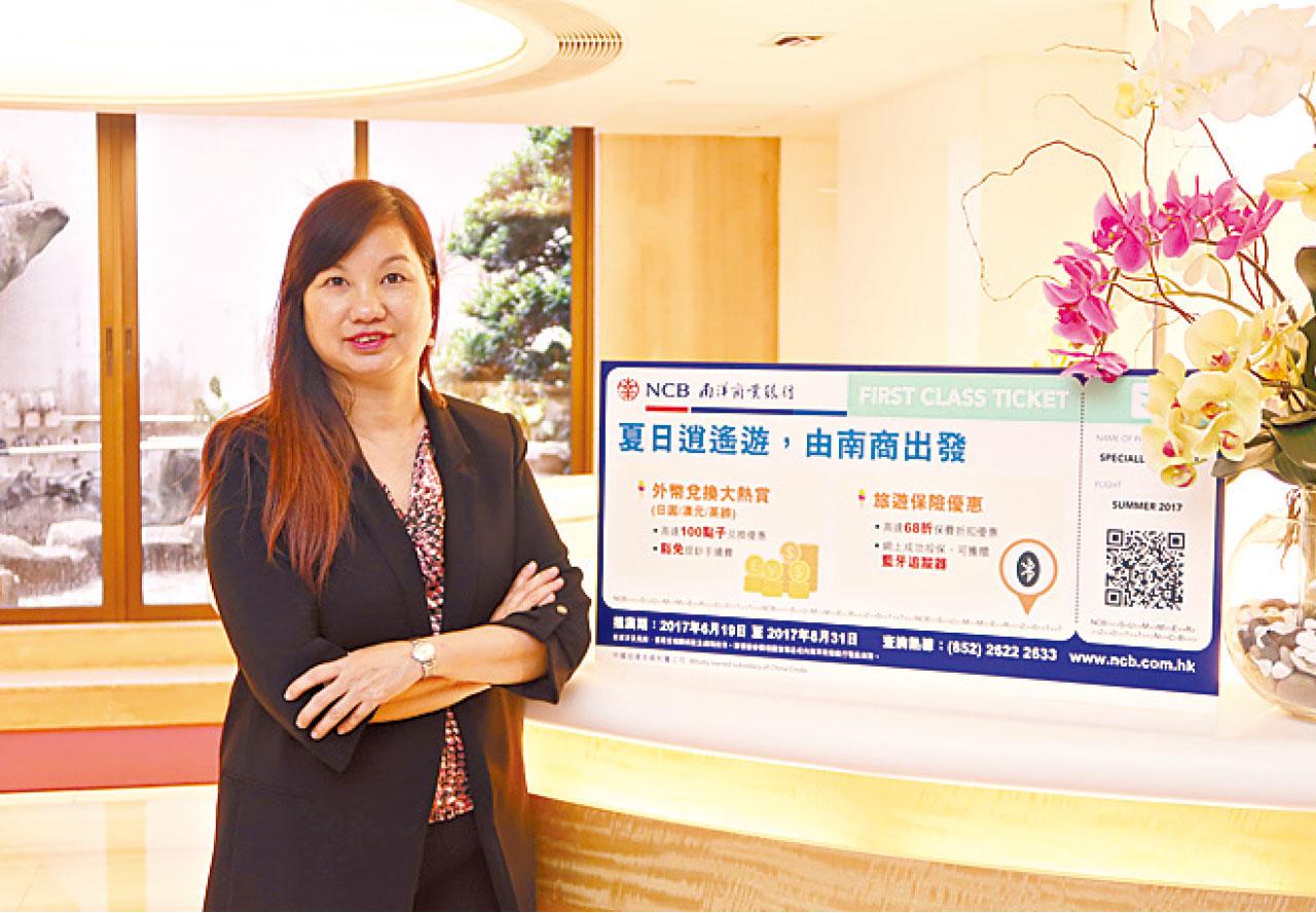 暑假最啱去旅遊充電,但亦要成日睇住外幣價格上落,南洋商業銀行今個暑假就推出咗個「夏日逍遙遊,由南商出發」,為客戶提供外幣兌換及旅遊保險等一系列優惠,期限由即日至8月31日。例如外幣現鈔,理財客戶經任何渠道以電匯形式兌換每筆日圓/澳元/英鎊達5,000港元或以上,即可享高達100點子的兌換優惠,而每日豁免提鈔收費的提鈔上限更高達60萬日圓/3,000澳元/3,000英鎊。至於旅遊保險,只要客戶經南商網頁、網上銀行或手機應用程式投保指定旅遊保險單次計劃可享高達 68 折保費折扣優惠,若成功投保全年保險計劃更有機會獲贈藍牙追蹤器。南商梅月嫦副總裁(圖)話,由於價格吸引,加上銀行網點較個別經營的找換店為多,故近年通過銀行買賣外幣及兌換現鈔的人數有所提升。