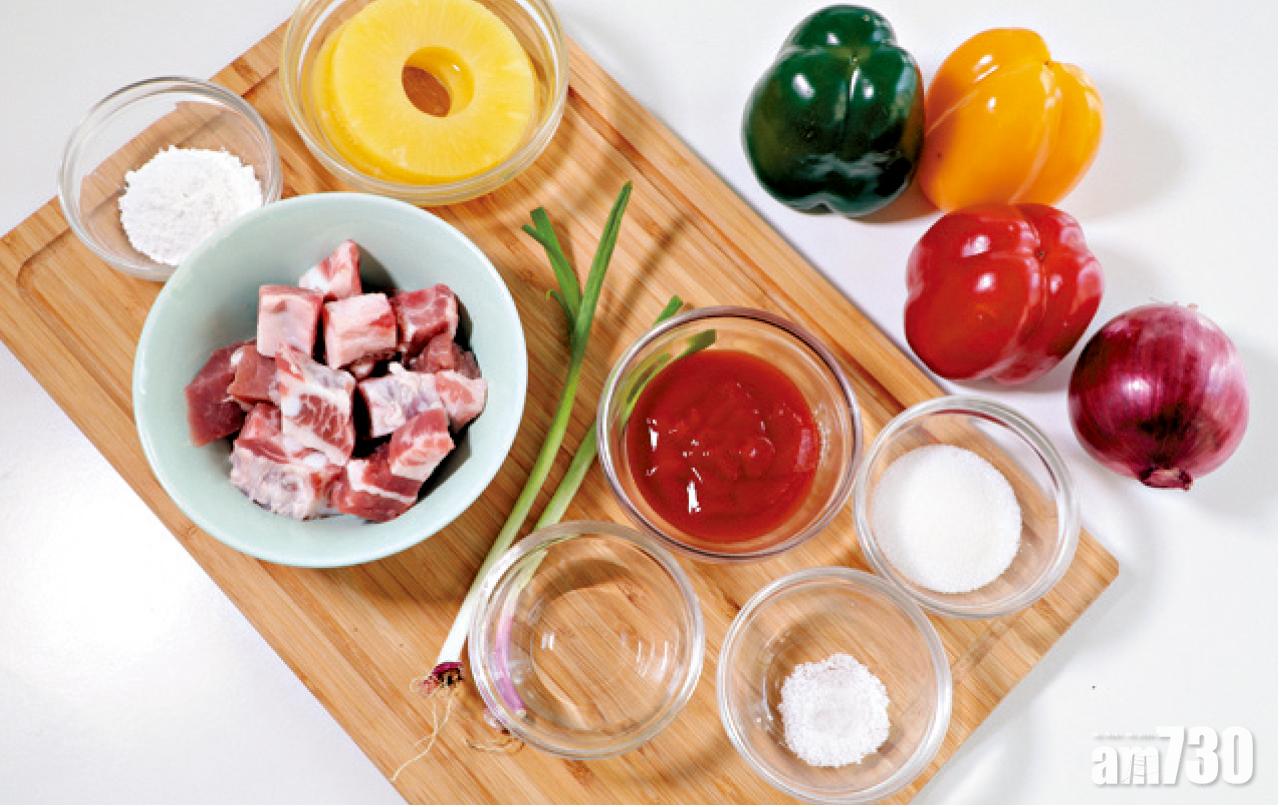8. 將排骨回鑊,加入蔬菜及菠蘿,翻炒至排骨沾上酸甜醬即可。