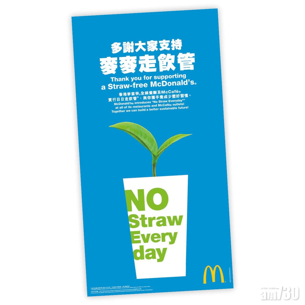 見過海洋生物肚內塞滿塑膠慘死,相信大家都同Ray一樣,出外食飯都會「走飲管」。大型連鎖快餐店麥當勞今年9月開始,逢周一推行「無飲管星期一」,但麥當勞決定再進一步,下周一平安夜起發動日日走塑──「麥麥走飲管」,不會主動派飲管,需要攪拌的冷熱飲品,則以木攪拌棒取代。