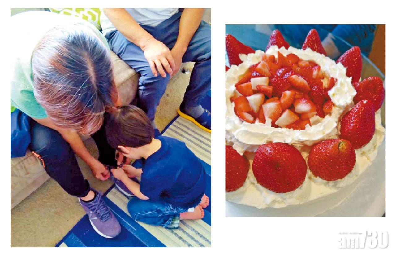 十多年沒有陪你過生日,今年我親手為你做蛋糕,一家人唱生日歌,女婿送花,外孫送禮物,你不斷笑說:「很快樂」。